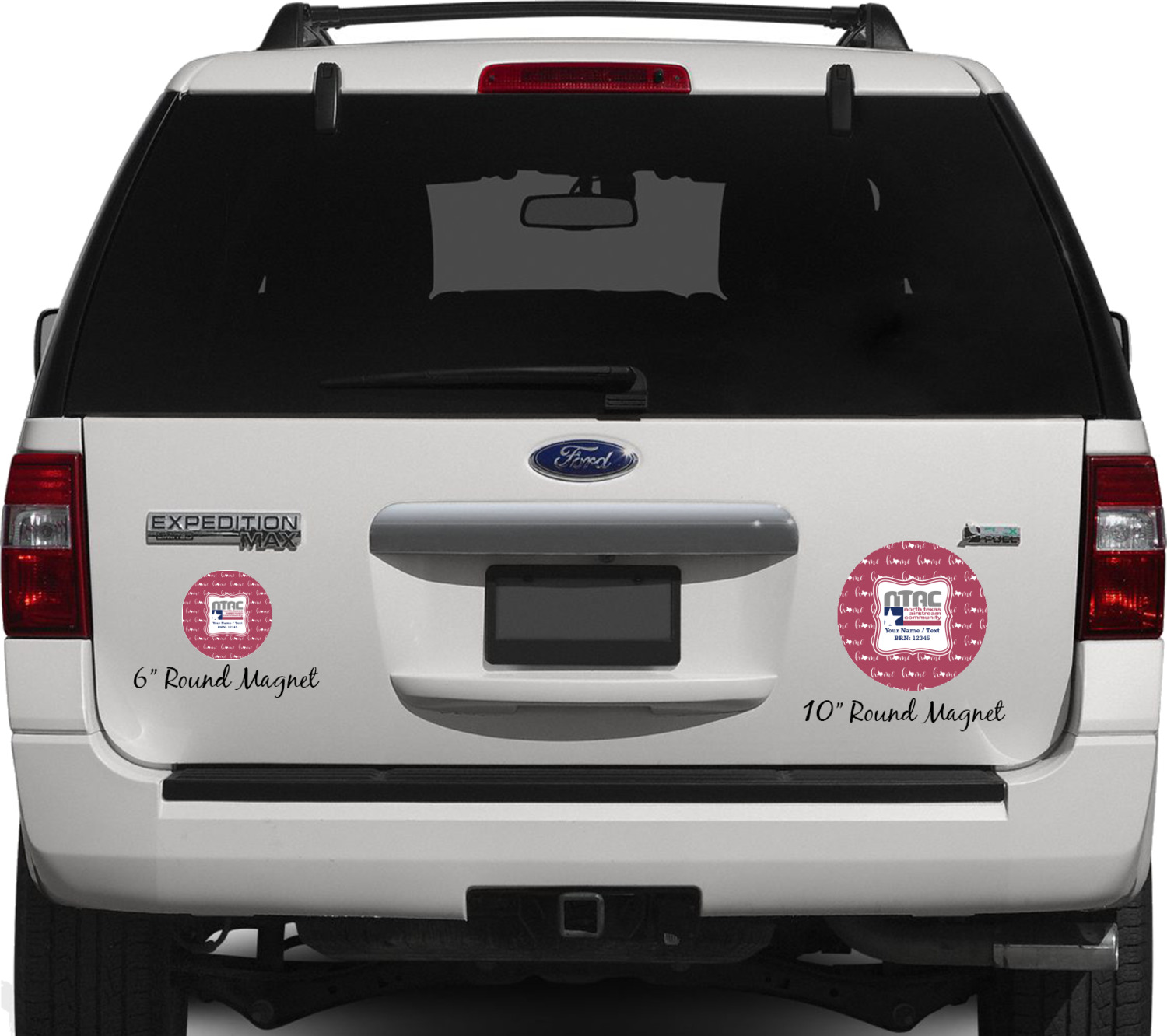 Your personalized car magnets are available for purchase in two shapes and two sizes. We carry round and square editions; each shape can either be 6 by 6 inches, or 10 by 10 inches, depending on your needs. Both versions are 1 millimeter thick, which is considered, within the industry, as the ideal thickness for automobile magnets. The magnetic car decals will adhere to any smooth, metal surface of your cars body, such as the trunk door or a side panel. However, please note that some vehicles are constructed from fiberglass bodies, which prevents the adhesion of anything magnetic. We advise that you test your vehicle before purchasing these magnets.