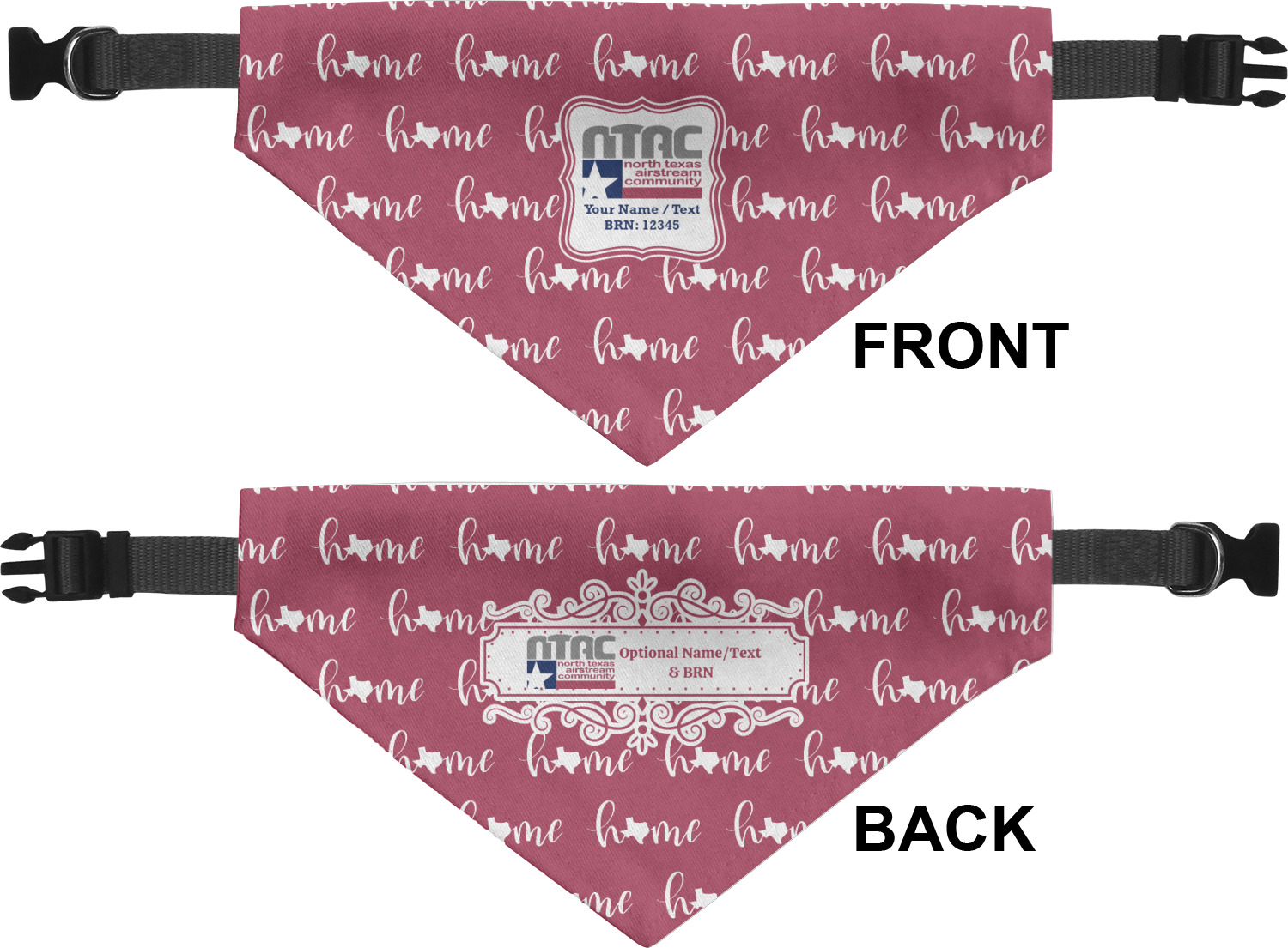We print the front and back of these dog bandanas with your customized design. The bandana itself is made from a durable polyester, sewn together with a gap large enough to accommodate any collar. Regardless, the bandana includes a plain black, canvas collar with plastic snaps, that can easily be removed if desired. These dog bandana collars are available in four sizes: small, medium, large, and extra large. Please see our sizing chart for more information regarding the dimensions of each size.