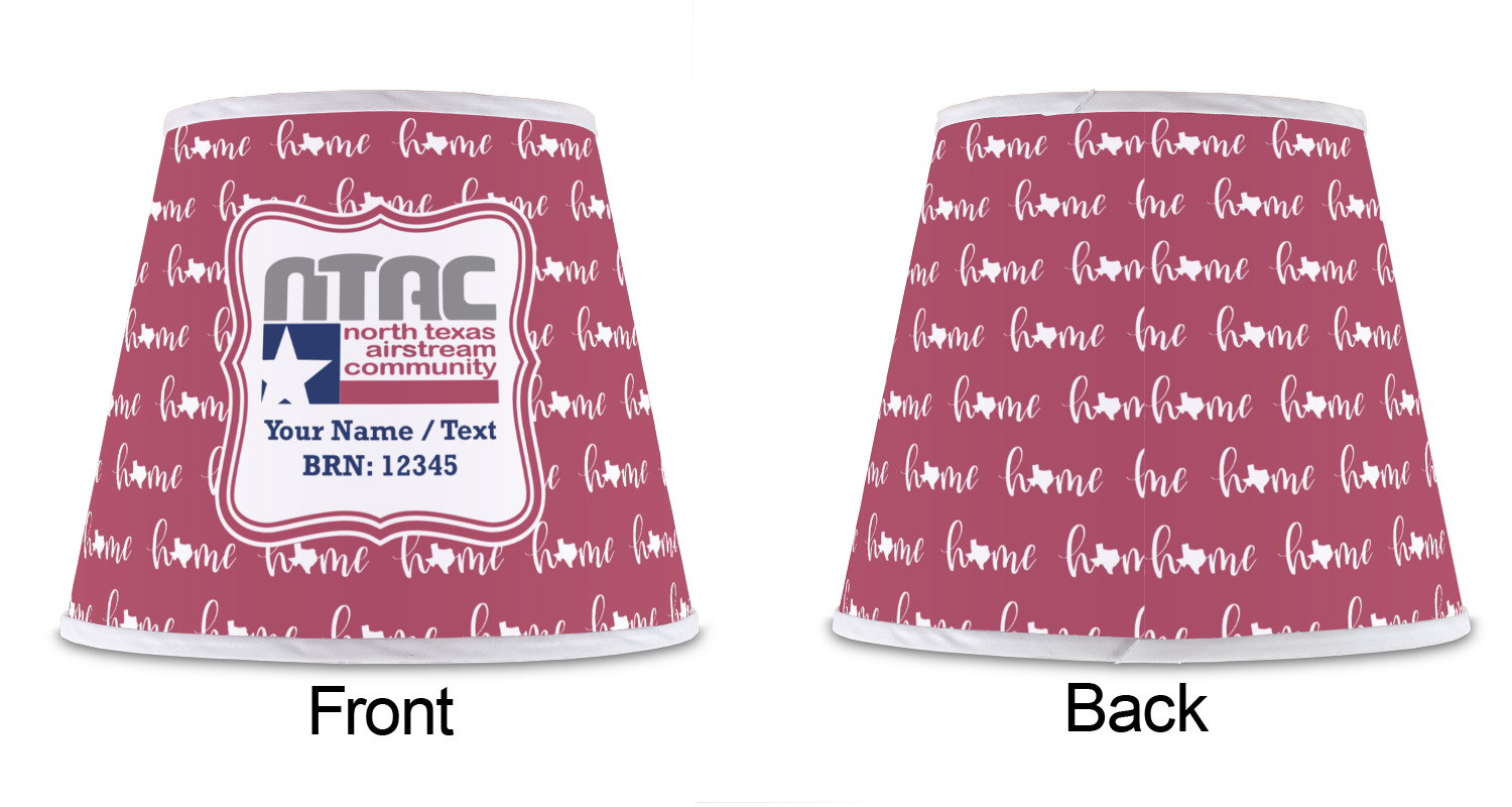 The base of this lampshade is 12 inches in diameter, and the top spans 8 inches in diameter. The total height of the lampshade is 10 inches. The angled nature of this custom lampshade concentrates the light, making it ideal for smaller spaces. This lampshade is made of matte, polyfilm, and displays your customization in its middle. The top and bottom of this colorful lamp shade are lined with a white fabric ribbon (which can be replaced with black inside the design studio) which frames your design and creates a sophisticated finish. As an UNO fitter lampshade, this unique lamp shade will fit a variety of bases.