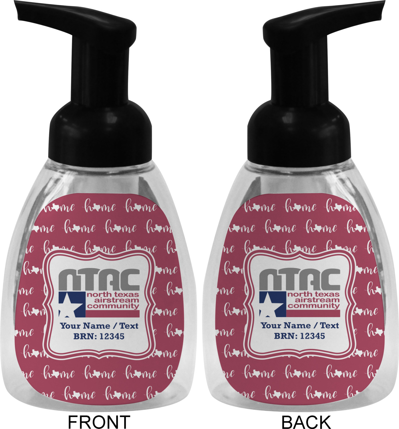 This soap dispenser is made of a robust plastic and has a clear base. The included soap pump is available in black or white color. This dispenser is 6.5 inches tall, 3 inches wide, and 2 inches deep. We display your customized designs on the front and back sides of these foaming hand soap dispensers.