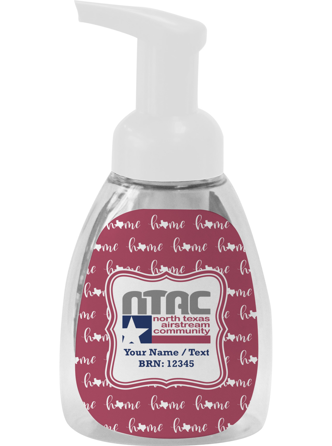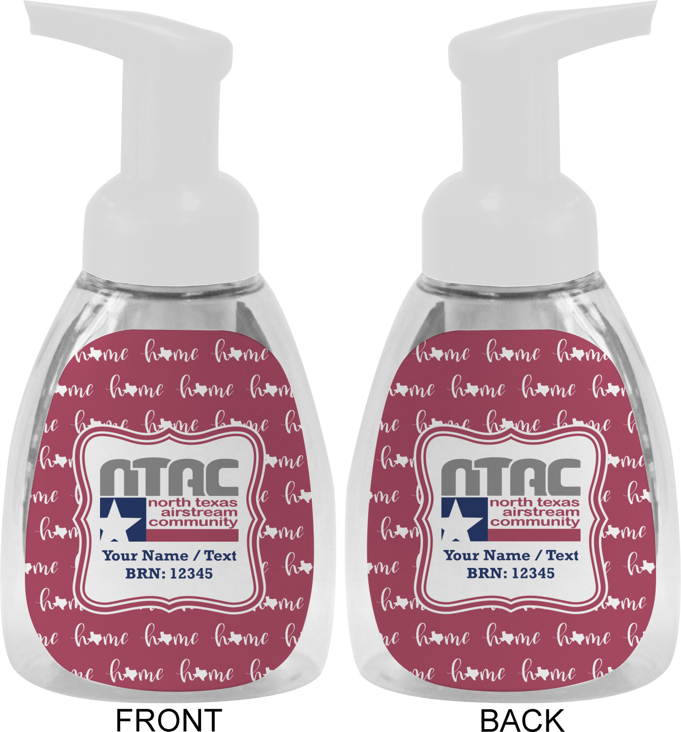 This soap dispenser is made of a robust plastic and has a clear base. The included soap pump is available in black or white color. This dispenser is 6.5 inches tall, 3 inches wide, and 2 inches deep. We display your customized designs on the front and back sides of these foaming hand soap dispensers.