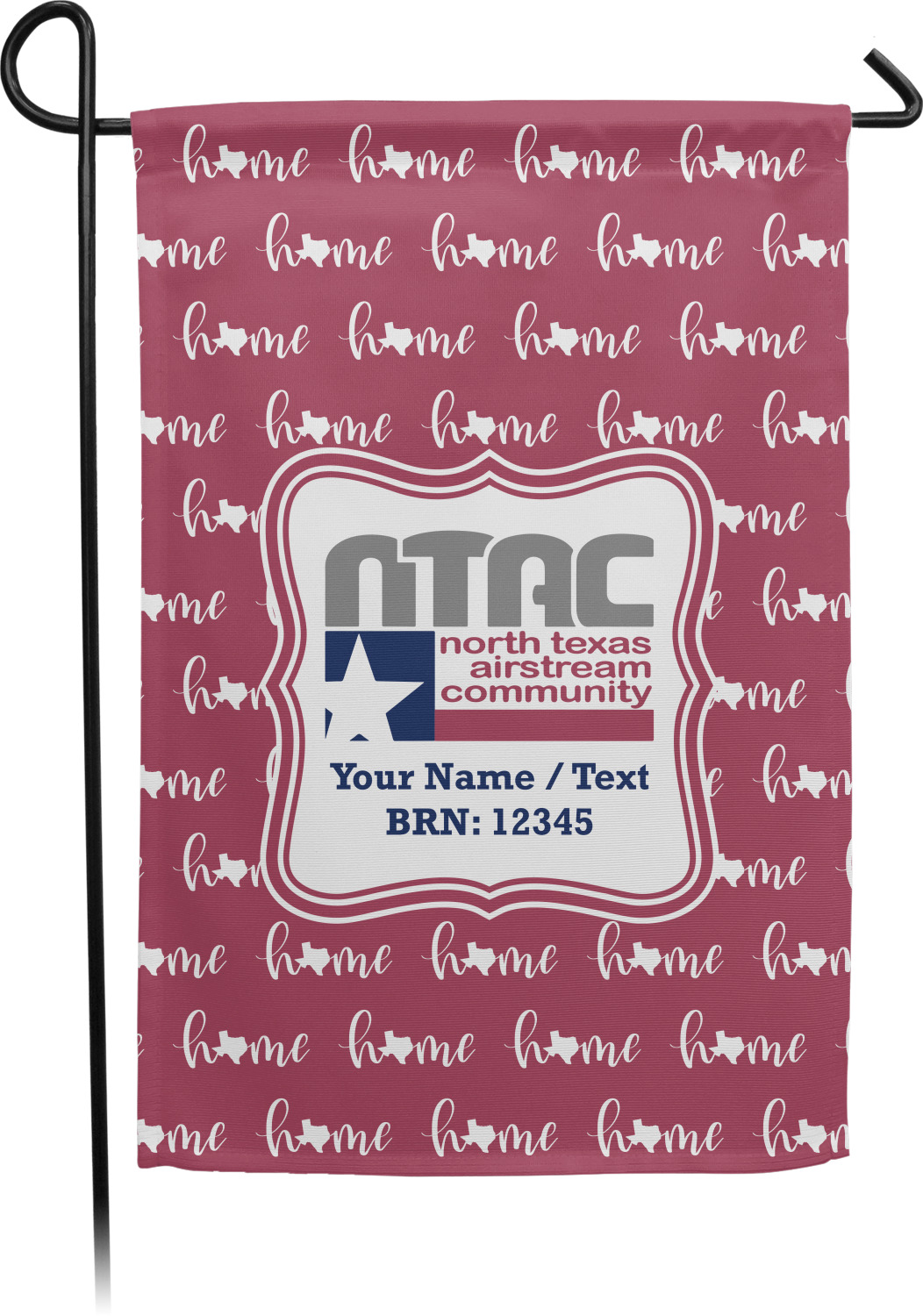 These custom garden flags are made of a durable, double-ply, polyester weave, allowing them to withstand the elements year round. The small flags measure at approximately 12 by 18 inches. The large flags measure out to 28 by 37 inches. You can order these decorative flags with your customization printed on the front only, or the front and back.