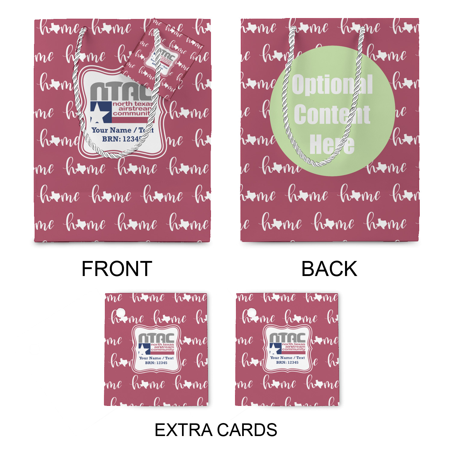The bottom of the bag has a cardstock base to make the base more sturdy to hold up to all of your gifts. Each bag comes with one card on the rope handle and at least 1 extra card.