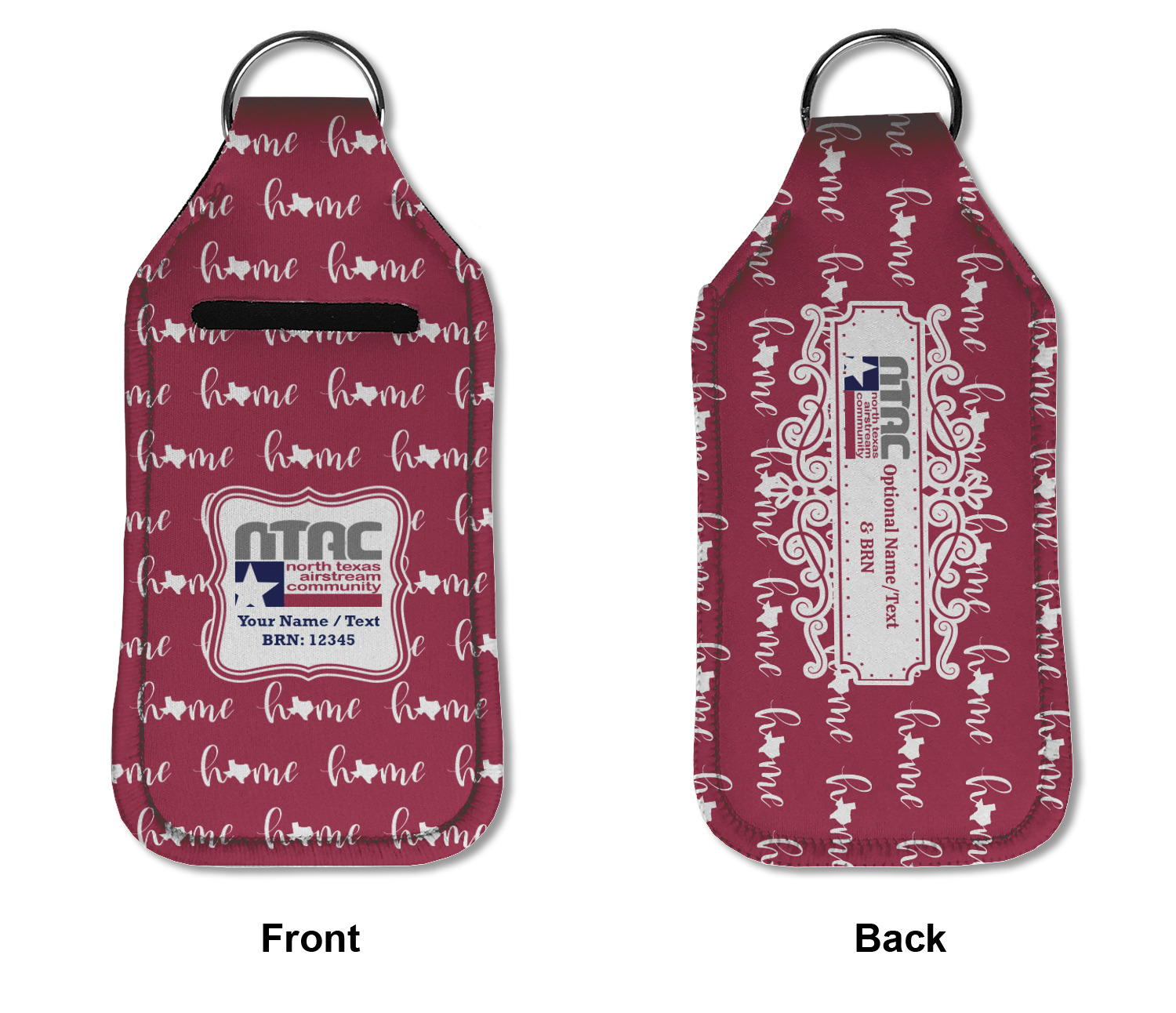 Each hand sanitizer holder comes with its own empty travel-sized, refillable hand sanitizer sure to fit snug in your customized sanitizer case! Our hand sanitizer cases are a durable, yet soft neoprene material sure to last any daily activities or travel agenda. Customize and personalize a hand sanitizer bottle holder with one of our two sizes - small (4.25" x 2.25") or large (5.5" x 2.5"). Each travel sanitizer holder comes with a keyring for attachment on bags, keys, or more!