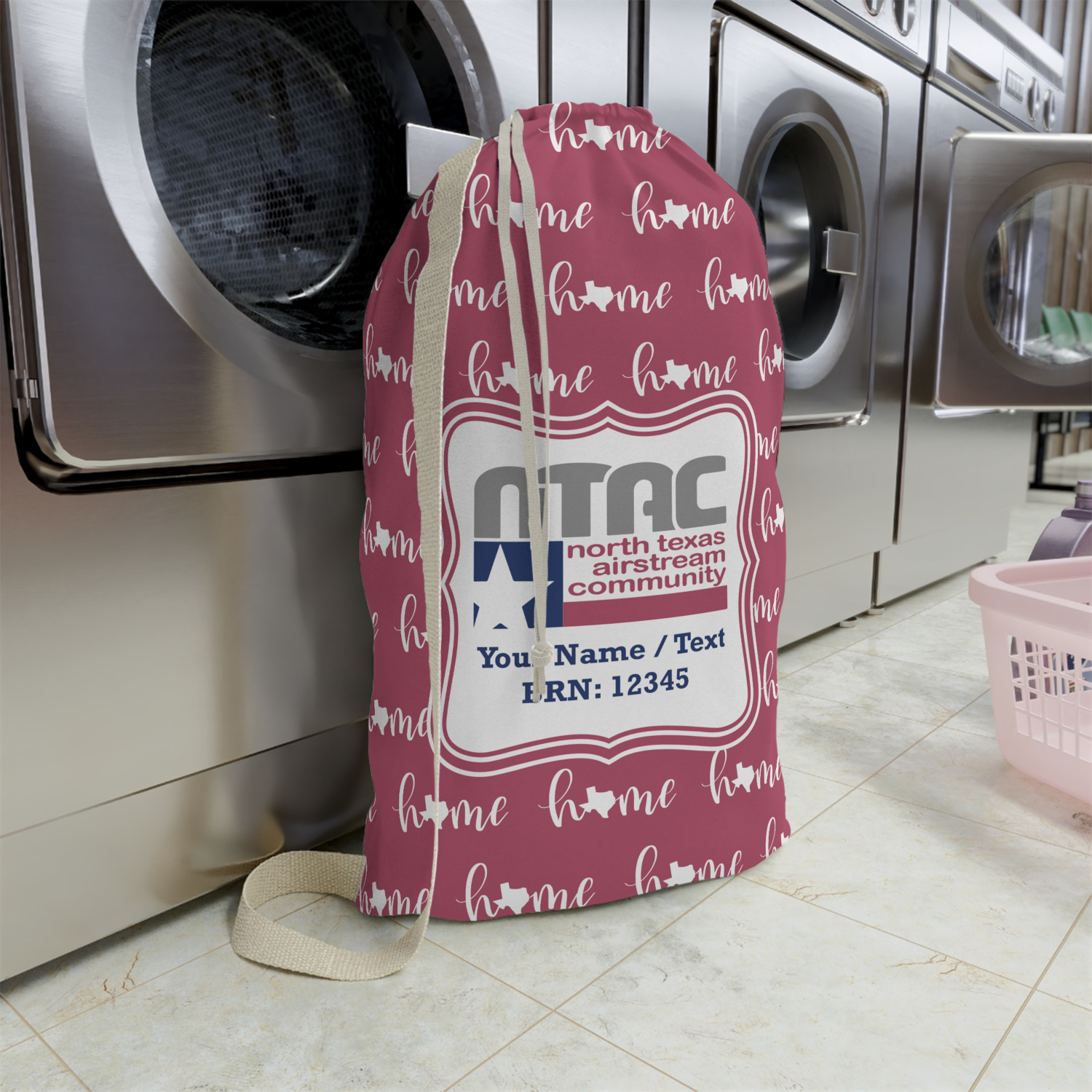 Carry your laundry in style with these customized laundry bags. Available in two sizes, featuring a natural colored woven strap and a cinch cord, these bags hold a lot of clothes or anything else you want to fit in them.