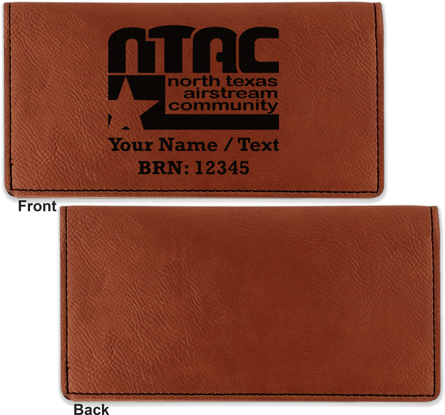 Go into our design center to start personalizing. Your checkbook cover will be laser engraved, making the graphic or text a black color. Choose a fun saying, monogram, or font to go on your checkbook cover. You have the opportunity to do it double or single sided.