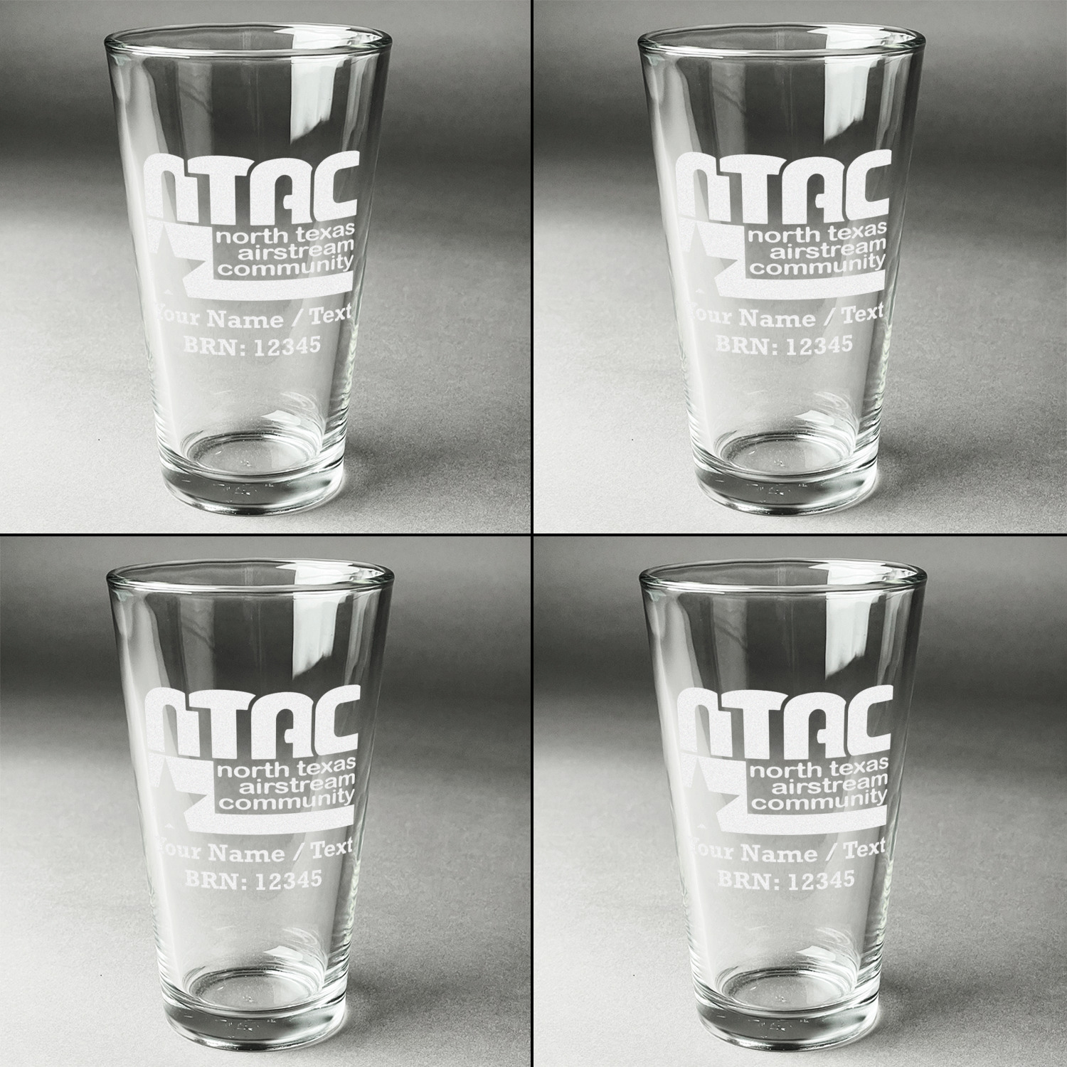 Available in a single glass or a set of 4 - each glass will be custom engraved with your design. Each glass holds 16 oz and measure 5.75"H x 3.5"W.