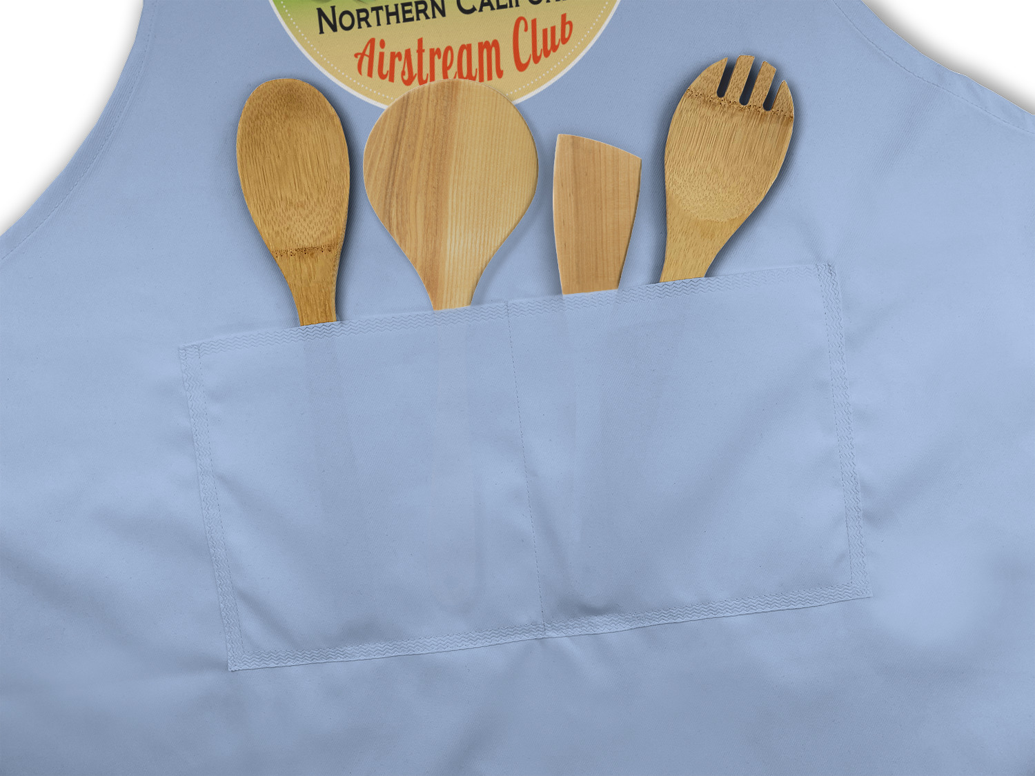 Our aprons are a lightweight yet durable polyester material. We offer two styles of aprons, one without pockets and one with two pockets adorning the center near the waistline. Each apron is one size* and comes with adjustable straps for both the neckline and waist. We print your custom design on the front of the apron to display your creativity!