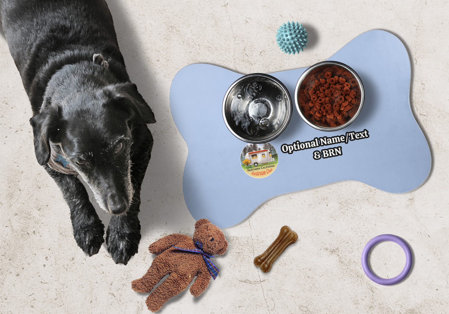 The bone-shaped dog bowl mat is the perfect way to add a touch of personality to your dog's eating area! Dogs make inevitable messes, especially when they eat and drink. Save the integrity of your floors and the time spent cleaning them by purchasing a personalized mat that catches spills!
