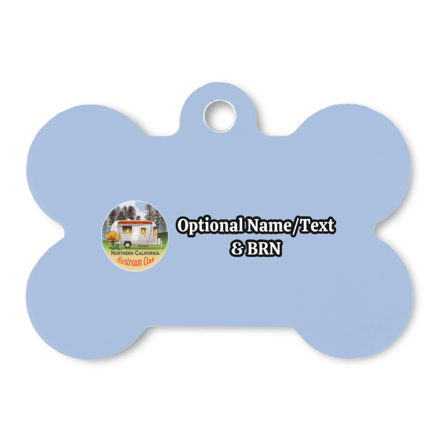 Shaped like a bone and made from aluminum, these tags are available in 2 different sizes.
