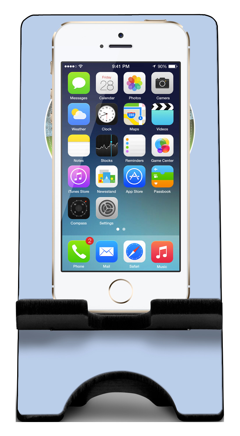 To meet your needs, we offer four variations of this IPhone stand. The backboard of the first version is shaped as a plain, yet sleek rectangle, and is available in two sizes. Our smaller size is approximately 4 by 3.25 by 7 inches, while the larger model is 4 by 3.77 by 8.5 inches. Alongside this model, we also provide you with a more decorative option. The upper part of our second version features a curved edge, for a classy, suave appearance. This phone holder is also sold in two sizes: a smaller version, which is 4 by 3.25 by 7 inches, and our larger model, which is 4 by 3.77 by 8.5 inches. Both models will support large phones, but the larger model is better if you wish to proudly display your personalized design.