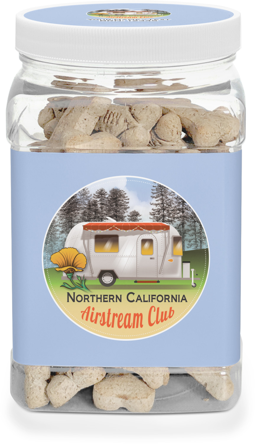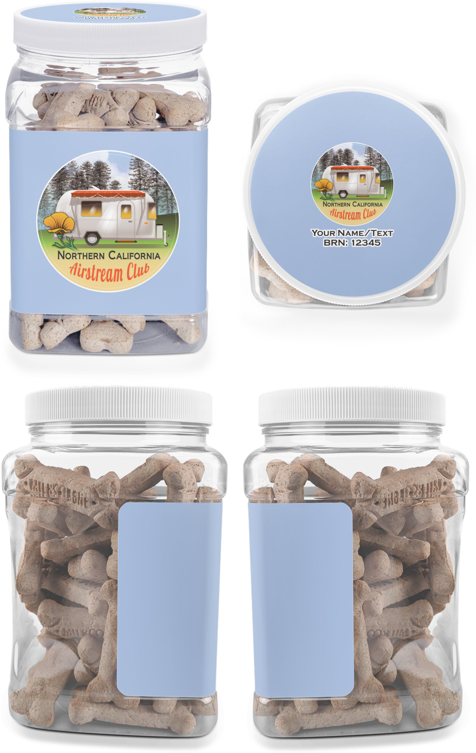 This half gallon jar, made from a sturdy plastic, is the perfect way to keep treats from any naughty pet paws, while still keeping them ready on hand for when your pup performs an impressive trick. This dog cookie jar features a screw-on, white lid that displays your personalized design on a vinyl sticker. We apply another customized sticker that wraps around the front and sides of the jar. Our dog treat jar also has indentations on the rear ends of the sides, which allows for convenient handling, and its square frame allows for easy storage.