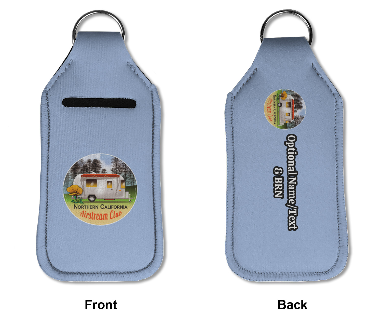 Each hand sanitizer holder comes with its own empty travel-sized, refillable hand sanitizer sure to fit snug in your customized sanitizer case! Our hand sanitizer cases are a durable, yet soft neoprene material sure to last any daily activities or travel agenda. Customize and personalize a hand sanitizer bottle holder with one of our two sizes - small (4.25" x 2.25") or large (5.5" x 2.5"). Each travel sanitizer holder comes with a keyring for attachment on bags, keys, or more!