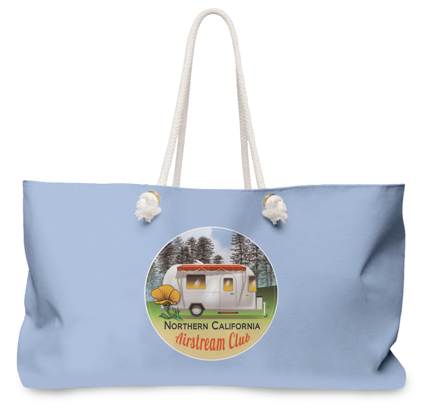 Our oversized weekender tote with rope handles is perfect for your weekend at the beach or on the town. This large tote are 24" W X 13" H, with a 5" gusset and a 27" thick rope handles with a knot that is put through a grommeted brass hole.