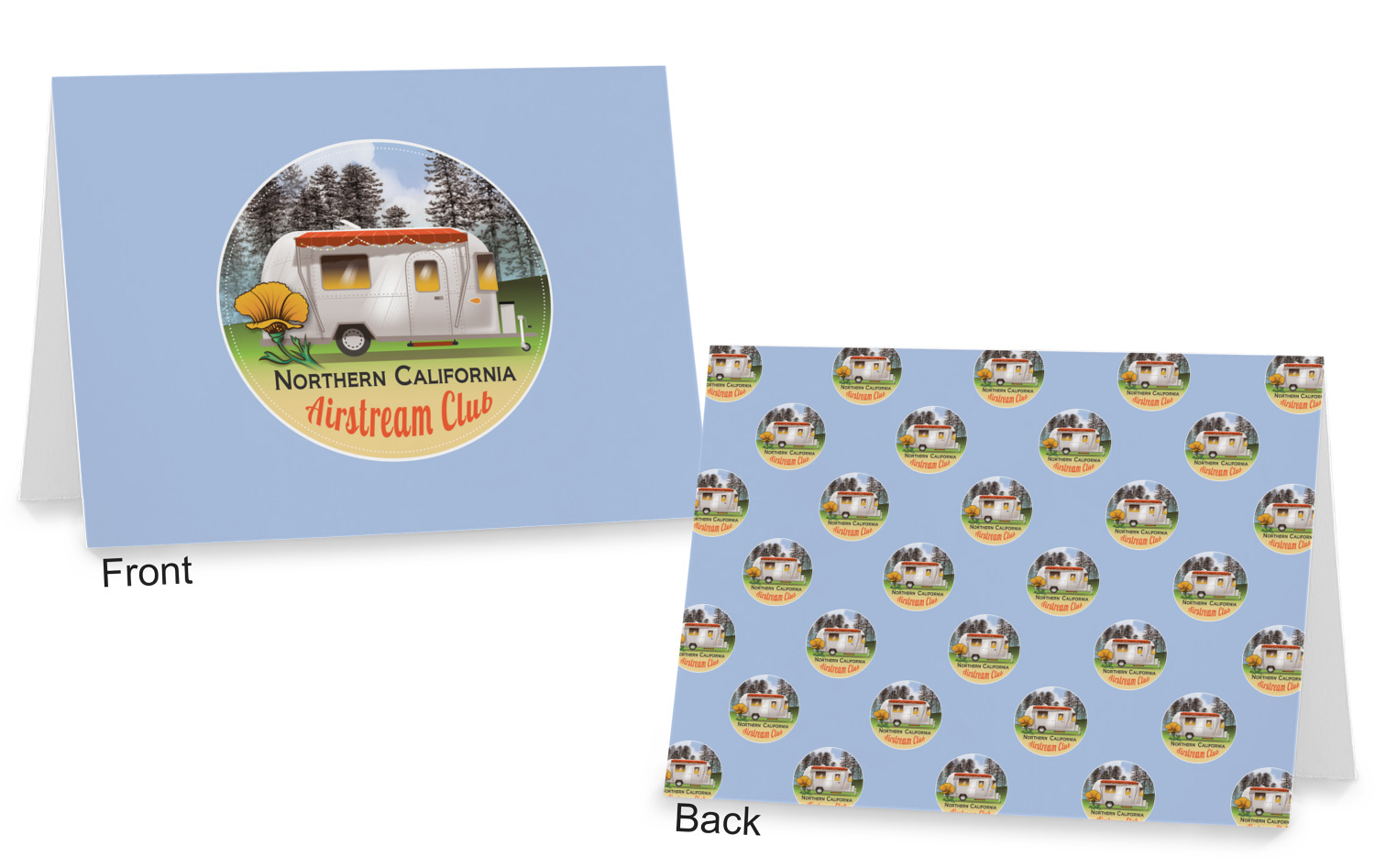 Our custom folded note cards are printed on premium 100lb. card stock and comes with white envelopes. The note card measure 5.5 by 4.25 inches and are blank on the inside for your handwritten message.