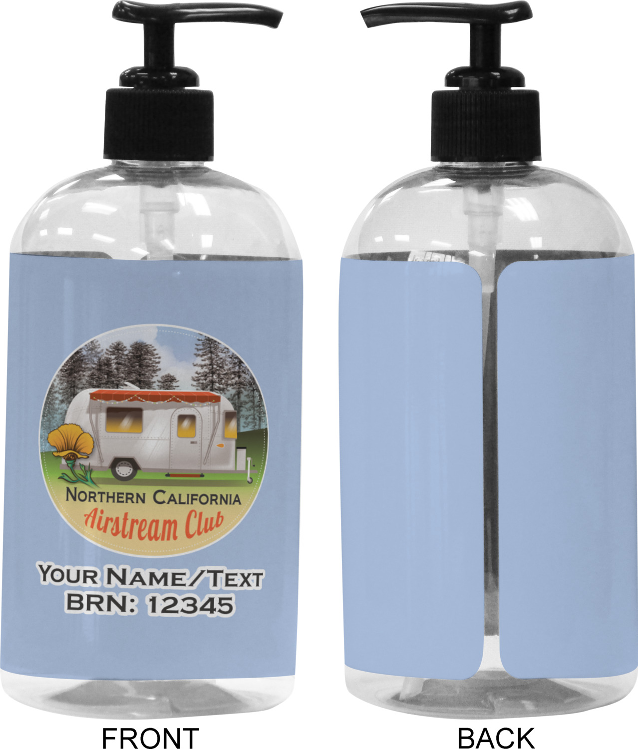 We adhere and wrap your custom printed design around the clear plastic bottle; there is a slight gap at the back for you to see the liquid level. Your design is printed on high gloss vinyl with eco-solvent inks and completely waterproof and will not fade or deteriorate over time. The vinyl is machine cut and adhered by hand to the clear plastic bottle.