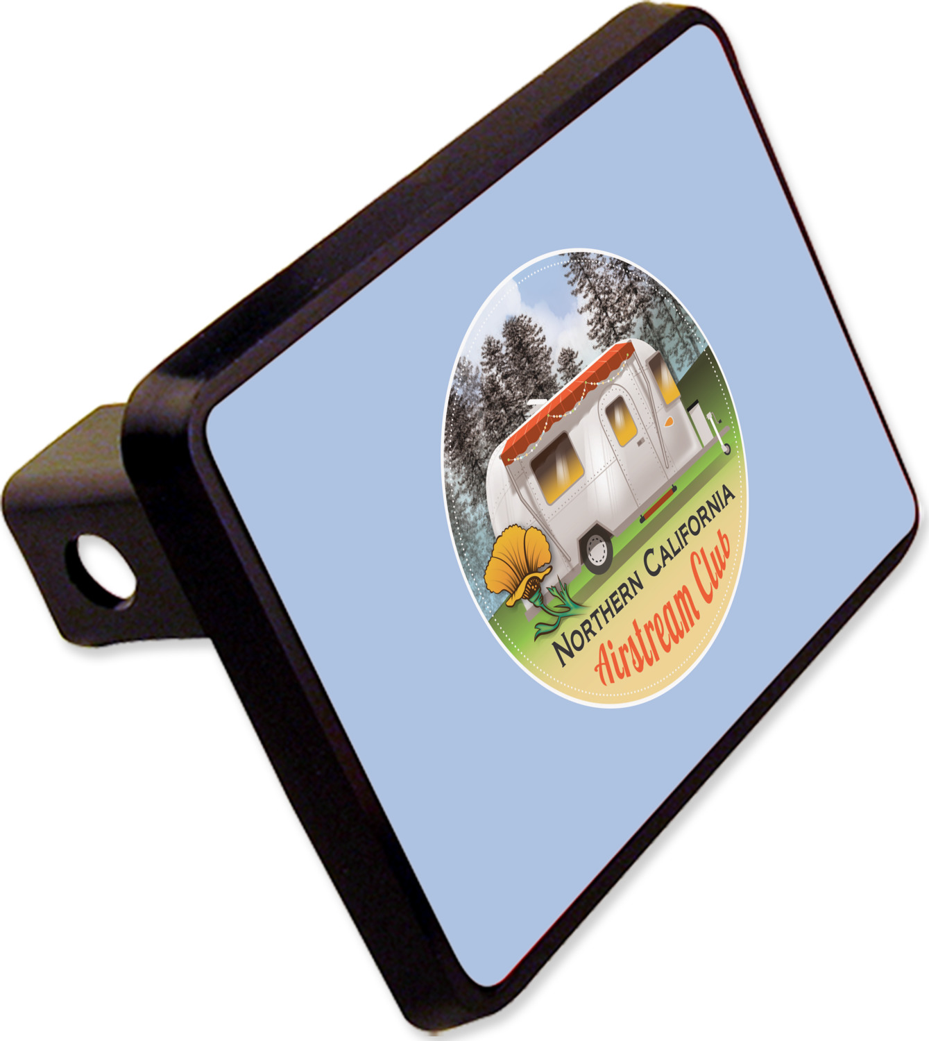 Our receiver hitch covers are molded, durable, and available in a size that fits 2in., square receiver holes. This model is best suited for a Class 3 or Class 4 hitch, but please consult our hitch sizing guide to make an informed purchase. We print your design on the surface of the rectangular cover, while the rest of the cover is a sleek, black color. The design's vibrancy will last up to 2 years in harsh sunlight. Designed for easy attachment, the cover slides easily into your trailer hitch and can be secured using a pin (not included).