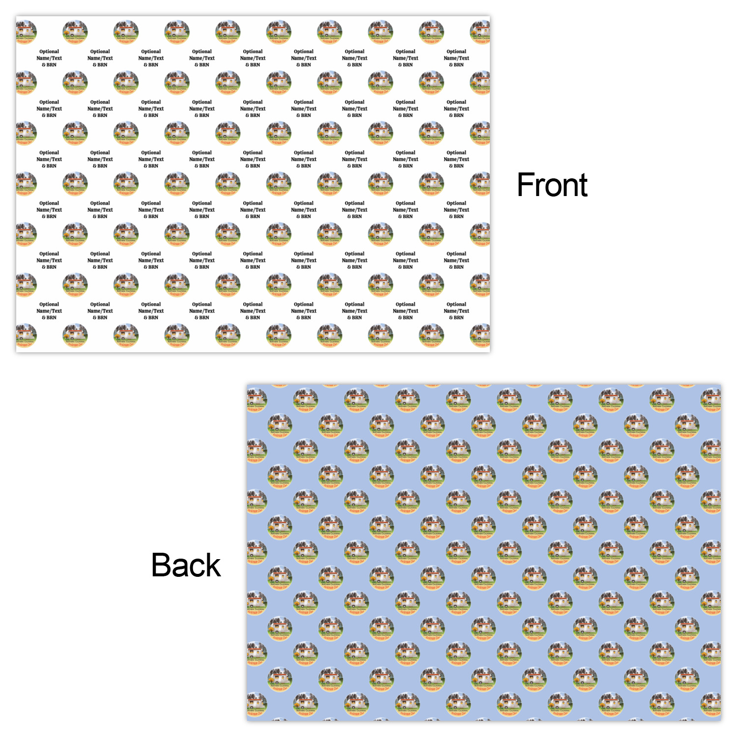 The second print style is double sided or reversible wrapping paper sheets. You can customize both sides of these wrapping paper sheets.