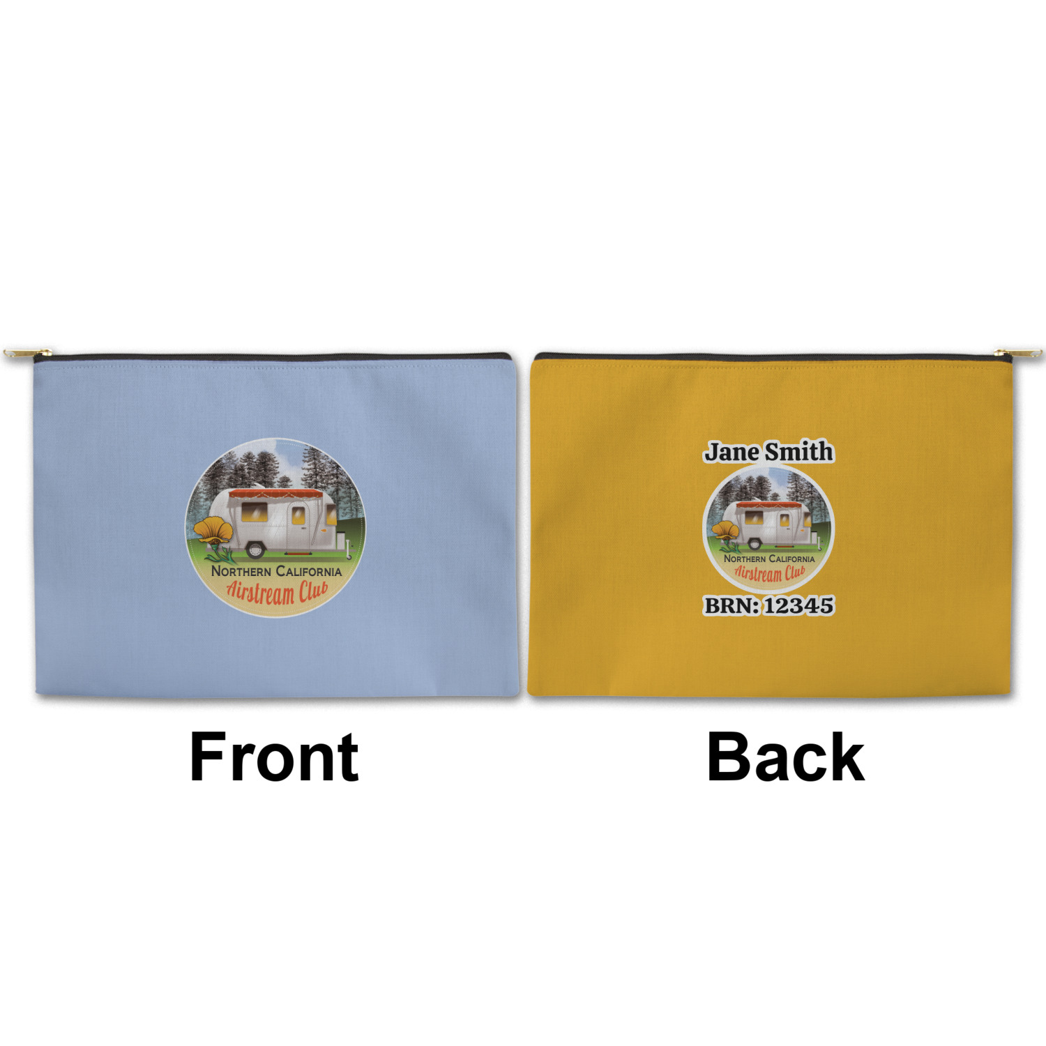 You can design both the front and the back of the pouch - same design, two complementary designs or two totally different designs - the choice is yours! We offer many different personalization styles i.e. name, name & initial, monograms - so the choice to personalize is also yours.