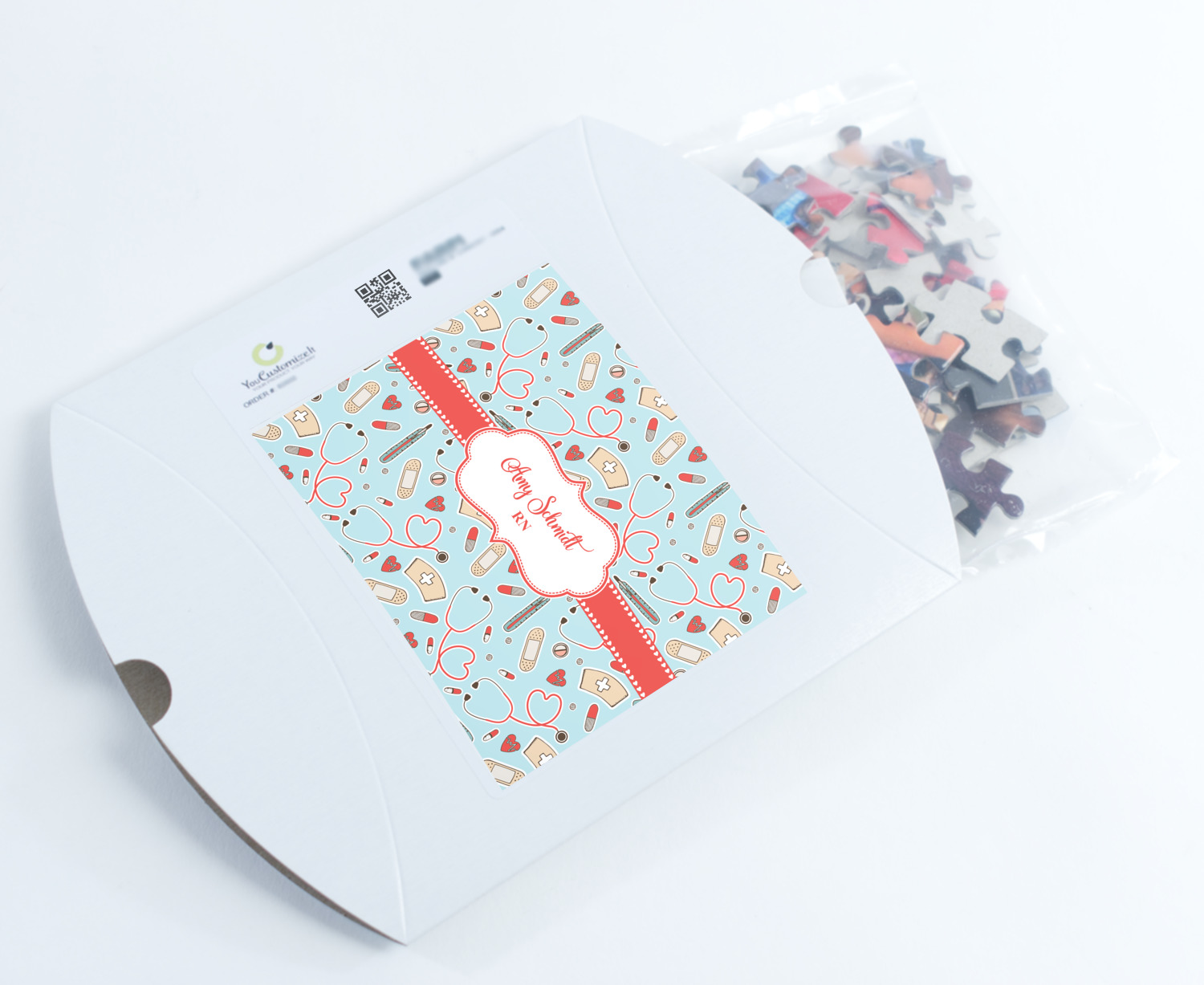 You can also upload your logo or art that you or your kids drew. To create more challenging jigsaw puzzles, you can create a pattern from with your logo or artwork. You can also add other elements such as text or personalization.