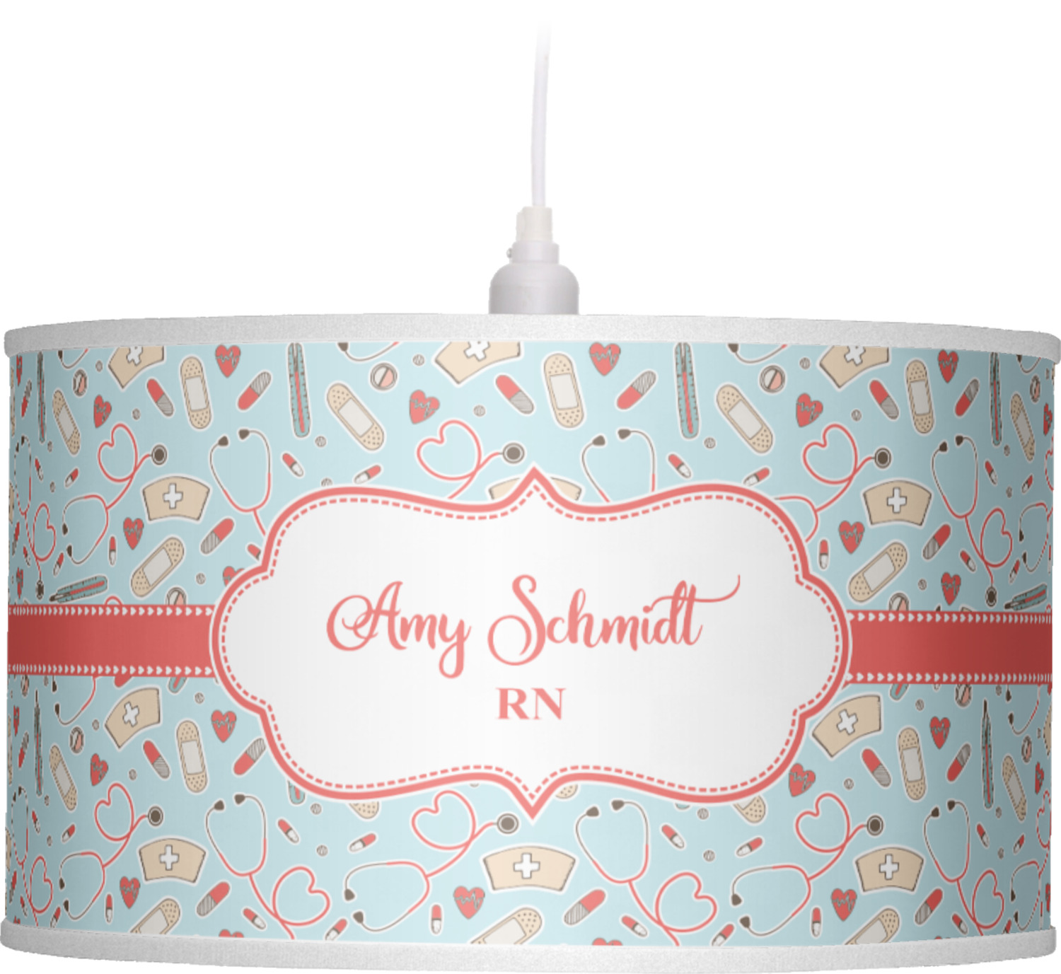 These pendant lampshades are in a cylindrical, drum shape. Available in 2 sizes - 16 inch diameter and a height of 10 inches or 12 inch diameter with a height of 8 inches, this lantern pendant light will not go unnoticed in your home. The interior of this light shade is made of flexible, smooth plastic, and the base color of the lamp is white. Your personalization is displayed on the exterior of this custom lampshade. The fabric shades the fabric fully wraps the ring for a sleek look. Your purchase includes a 12 foot long cord that has a convenient on and off switch attached, the cord is black in color with a tasteful cloth covering over the cord to add the sophisticated look to this light fixture. This lamp can fit a 60 or 75 watt light bulb, but the bulb is not included. Please scroll through the images above to learn more about the structure and shaping of this lamp compared to the other ones we offer.
