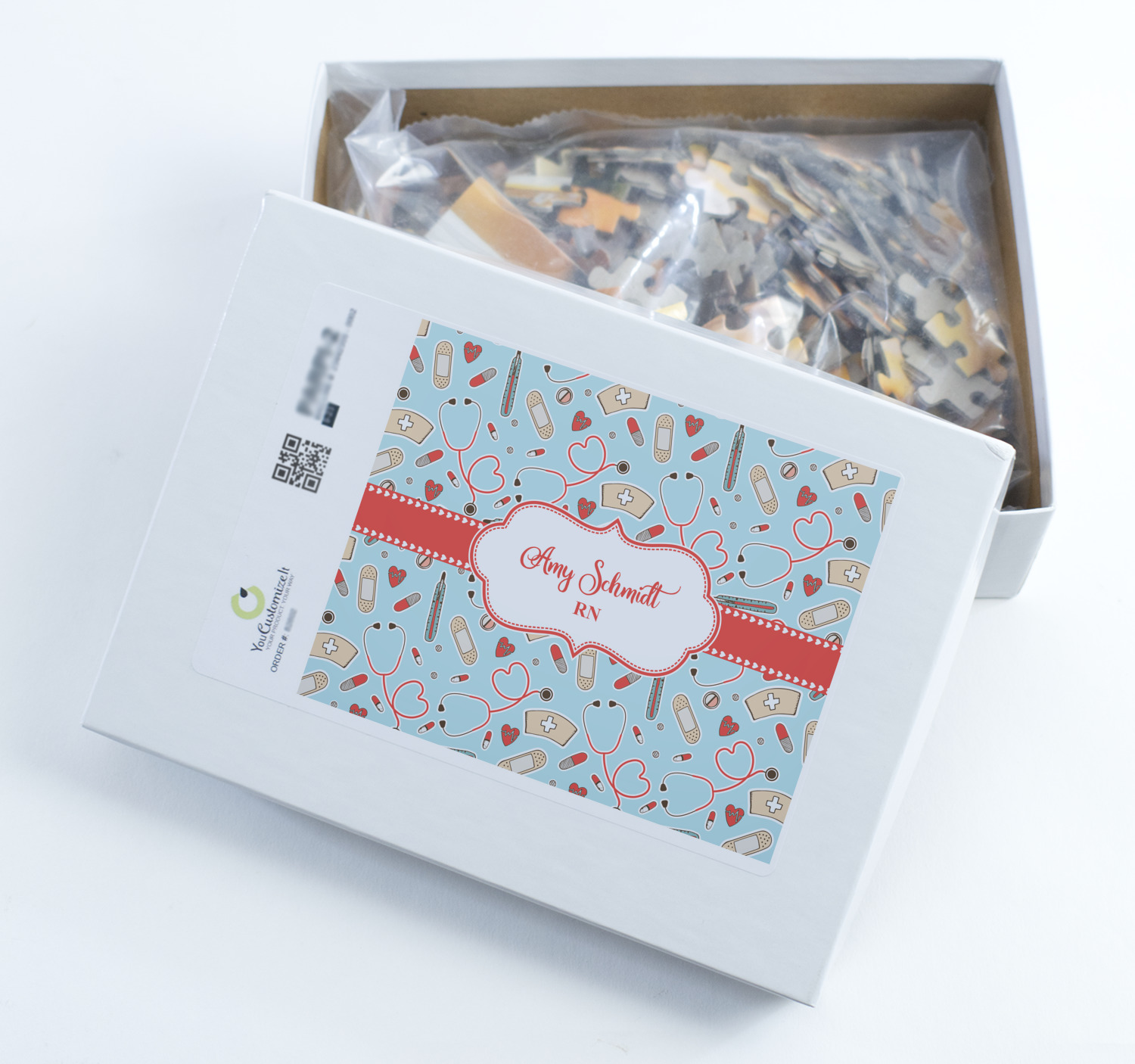 Depending on the look you are trying to achieve, you can add; a thematic pattern or background, with a photo in a frame and text or personalization to your puzzle. Basically if you can imagine it, you can design it!