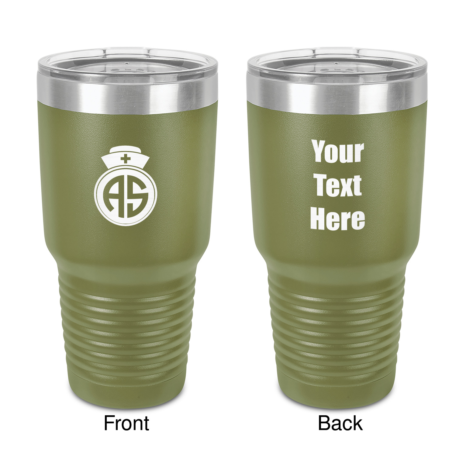 With our personalized 30 oz double wall stainless steel tumblers, you'll never have to settle for a plain, boring tumbler again! These tumblers will be a wonderful addition to your drinkware collection and will make those long commutes much brighter. Personalize one for yourself, or give these personalized tumblers as a gift to relatives, friends, or coworkers!