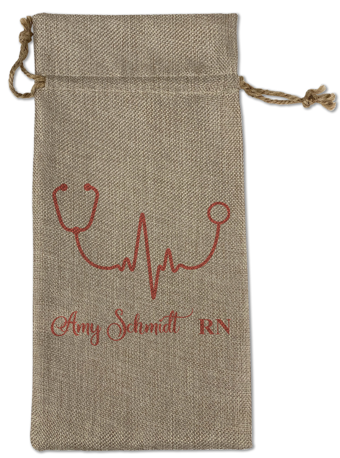 We sell our Burlap Gift Bags in 3 variant sized bags. Made with burlap polyester, each personalized bag can be secured with a twine drawstring pull. Your custom design is available to print on one side or both sides - completely up to you! The sizes of the bags measure approximately 4.5" x 6.5" for the smallest size, 6.5" x 8.0" for the medium size, and 6.5" x 13.5" for the large-sized bag.