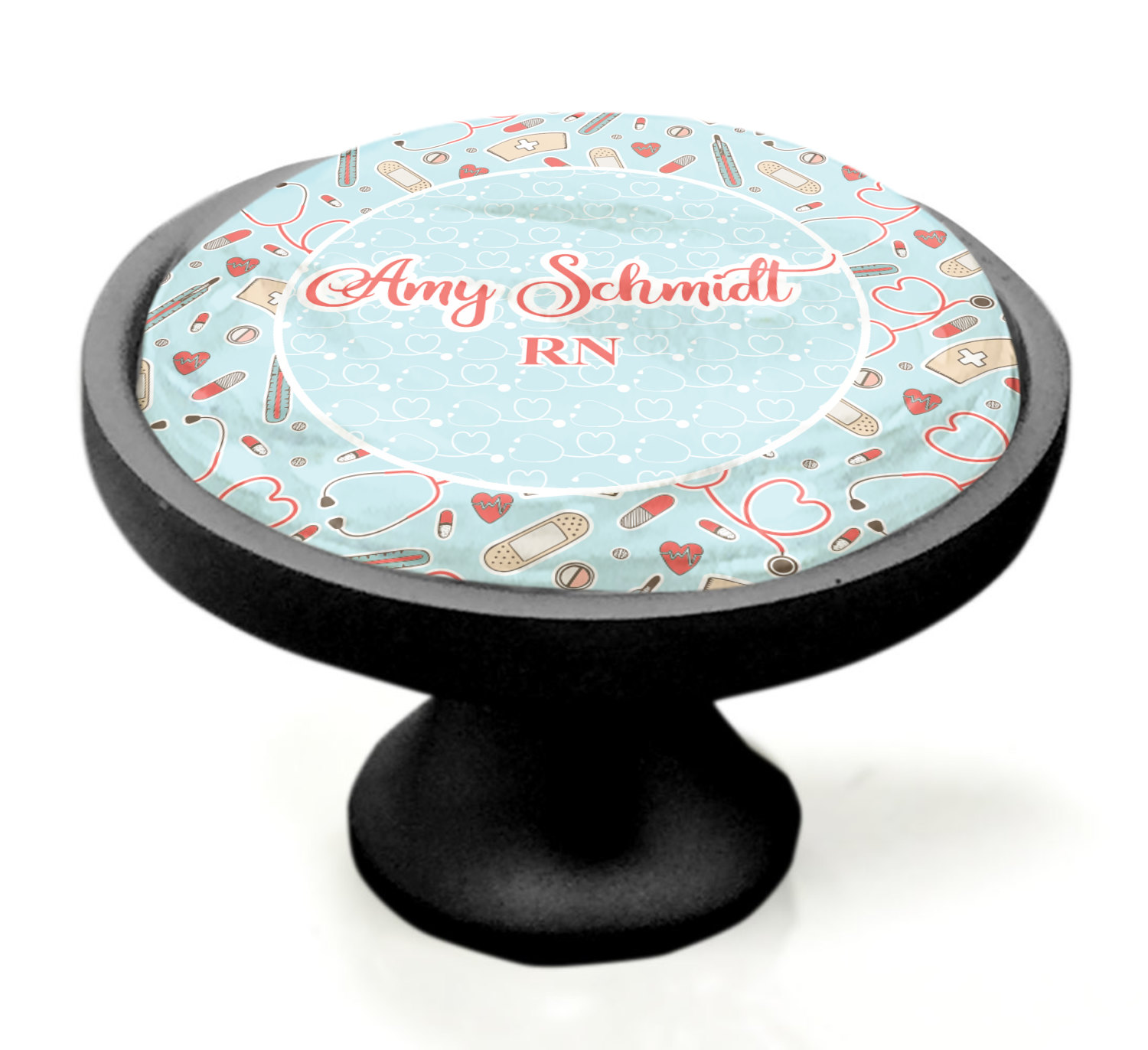 We sell these cabinet pulls in two different colors to better match your room's color scheme. We offer an oil-rubbed bronze base that is black in color, and a satin nickel option, which has a silver color. Your design is displayed across a high gloss vinyl insert that is placed on top of these cabinet handles. We then place a 1 inch thick glass cabochon atop the design, which seals the cabinet knob and makes the colors of your customization stand out. These custom cabinet knobs are approximately 1.3 inches in diameter. Your purchase includes a 1 inch screw that can be used to mount the knob to any cabinet in your home.