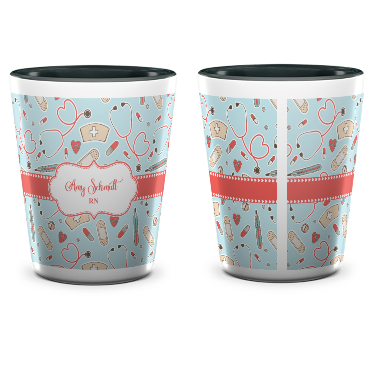 Made from ceramic these shot glasses are printed in full color with the design of your choice. These are a standard 1.5oz size and stand 2.25" tall. Available in a full white ceramic or a two-tone with a black color inside the shot glass. Buy a single or a set of 4, all of which can be designed separately to get you just what you want and need.