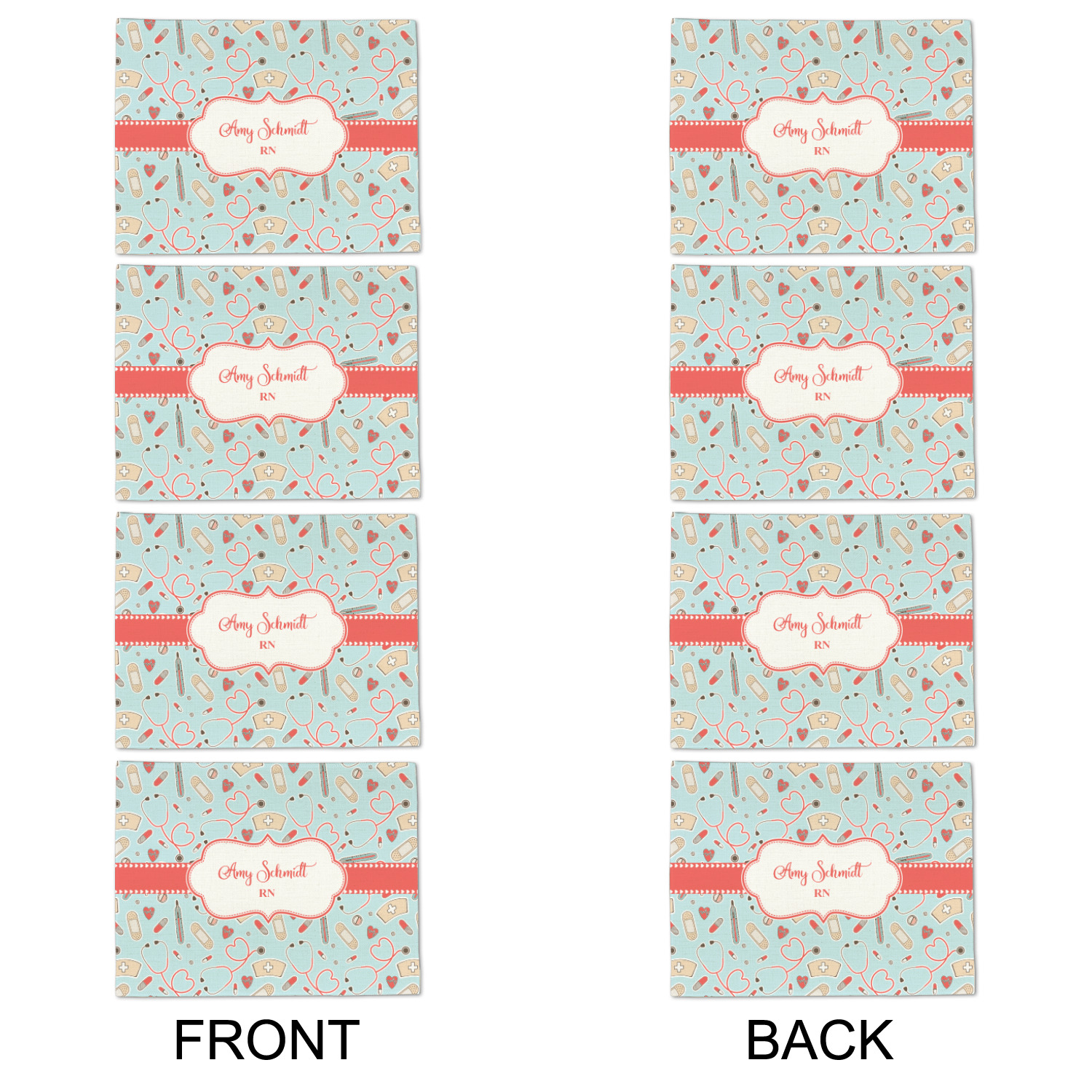 This design features a fun pattern with illustrations of different nursing tools, such as a stethescope, band aid, medicine, and more! The background is a light blue, while the ribbon is a coral color. There is a frame in the middle to put your personalization.