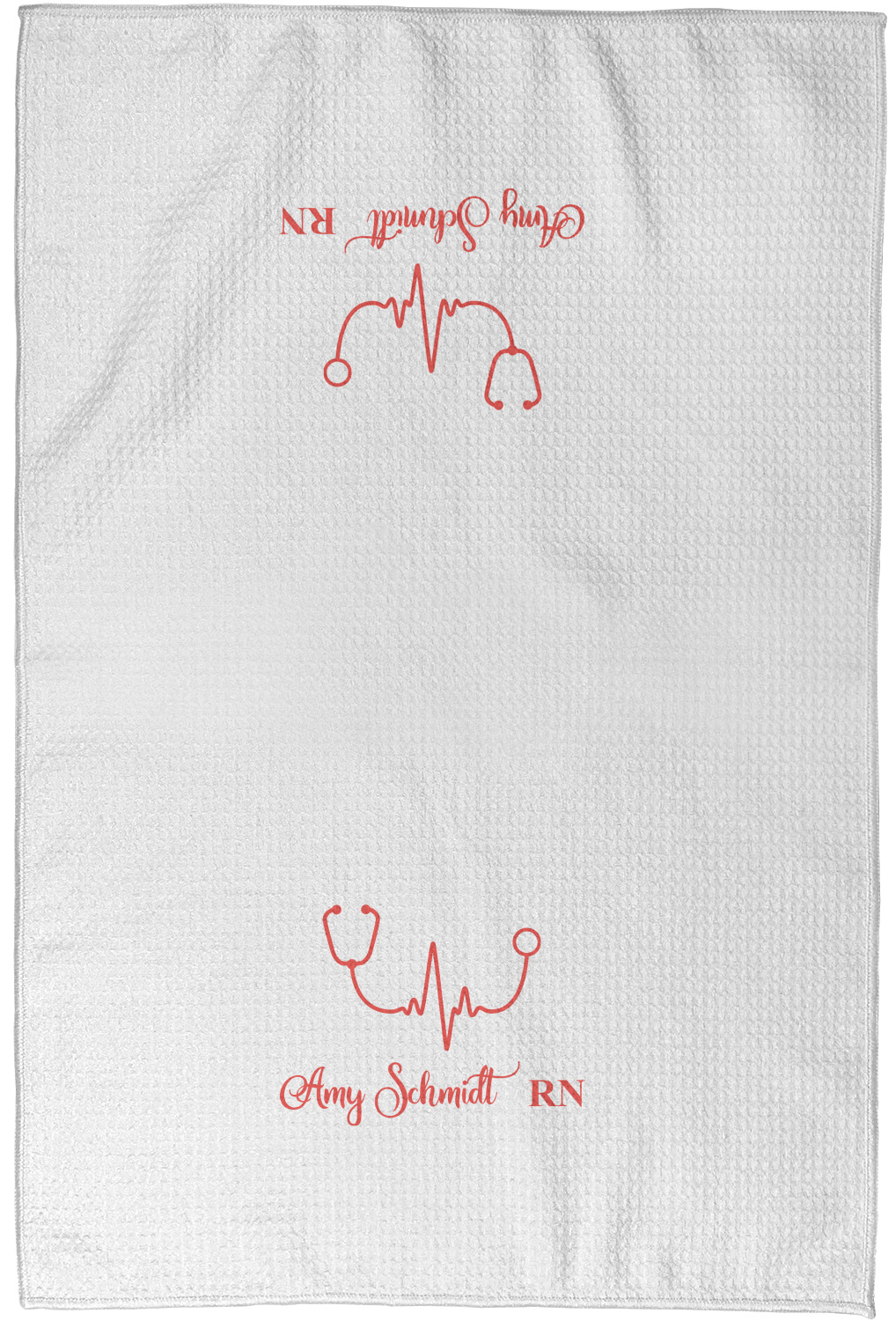 Each waffle weave kitchen towel is approximately 16 x 24 inches with your design printed on one side and the back is white.