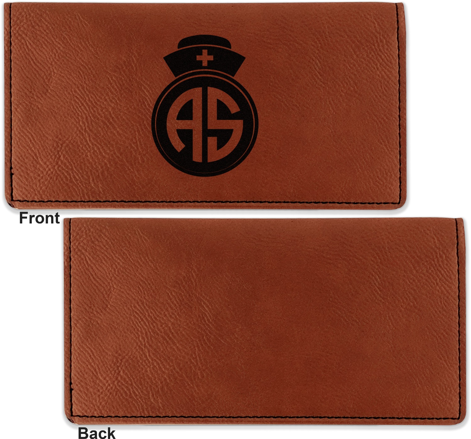 Go into our design center to start personalizing. Your checkbook cover will be laser engraved, making the graphic or text a black color. Choose a fun saying, monogram, or font to go on your checkbook cover. You have the opportunity to do it double or single sided.
