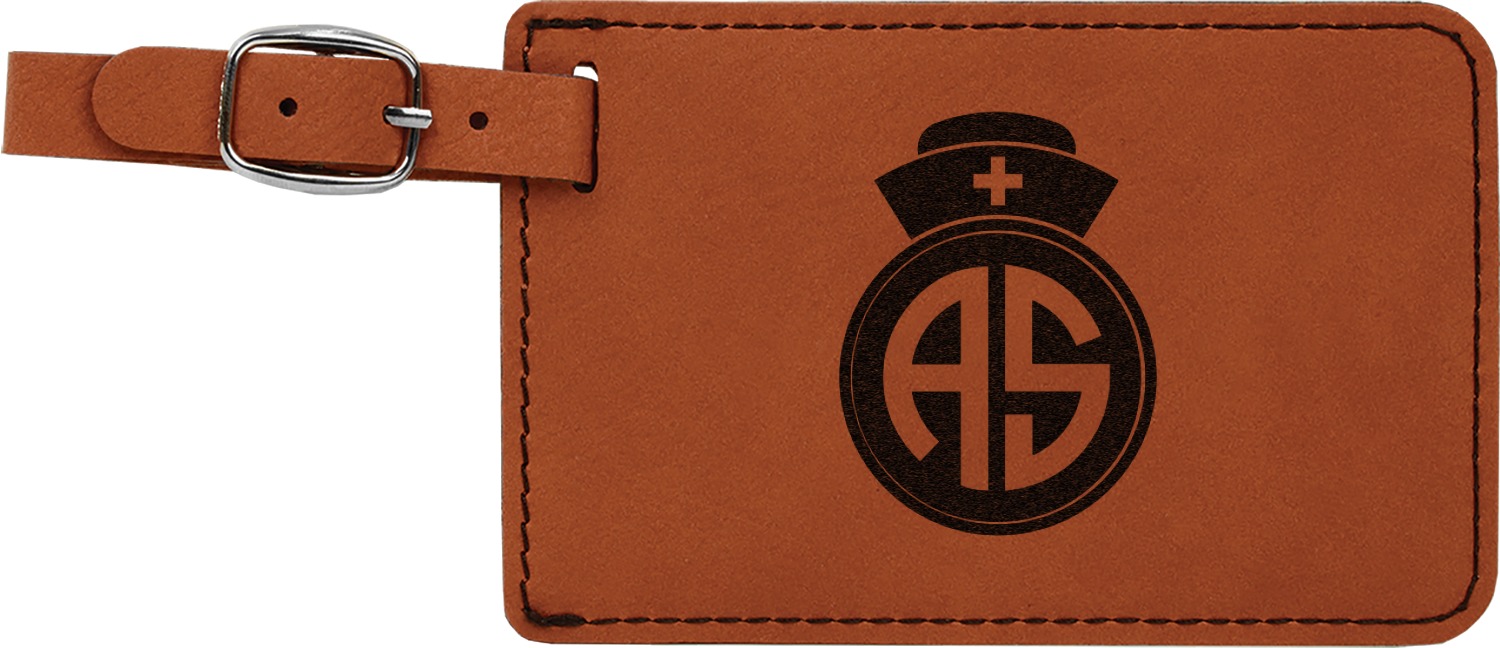 This luggage tag will surely be able to get you started in having all the right tools for traveling. It is made of a beautiful leatherette material that is a nice shade of cognac brown. The front of the tag is where your design goes. The sturdy black stitching gives your design an extra pop and gives the tag extra durability. The back of the tag has a clear vinyl window where you can slip in your address card. The tag comes with a great little buckle strap that you can easily use to clip to your suitcase. The tag itself measures at approximately 5.5"W x 4.25"H.