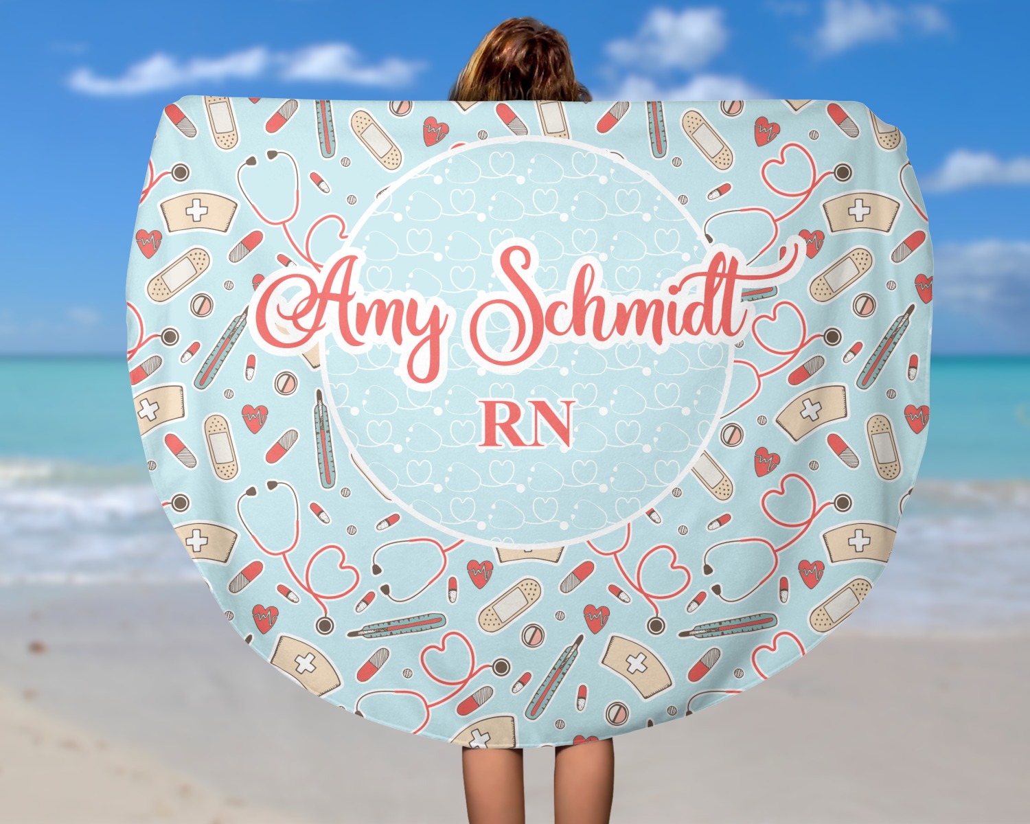 Think out of the box on your next beach, pool, or picnic day in style on your personalized round towel. This must have durable accessory is the perfect size for keeping you, and your possessions out of the sand. Sprawl out in the sun without getting your hands dirty, the unique round design allows for a full range of motion.