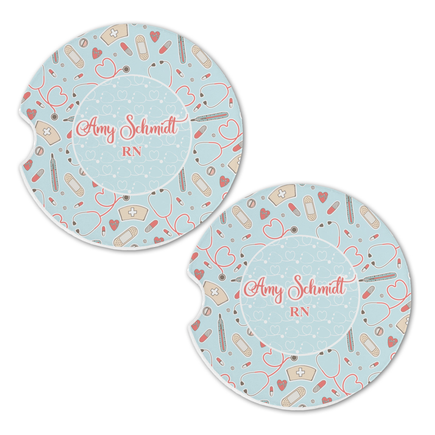 These sandstone coasters are round, robust, and feature a smoothed glossy side to exhibit your customized design. With a 2.5 inch diameter, these stone coasters will fit snugly inside most cup holders. This model also features a semi-circle shaped divot that allows for easy removal, despite the tight fit. You can purchase these car cup holder coasters in a pair, or singularly, depending on your needs.