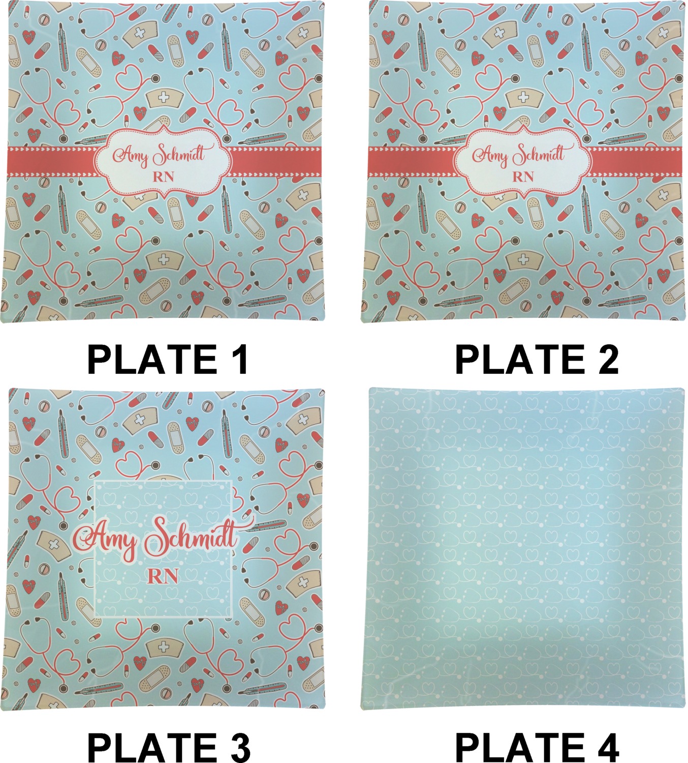 This design features a fun pattern with illustrations of different nursing tools, such as a stethescope, band aid, medicine, and more! The background is a light blue, while the ribbon is a coral color. There is a frame in the middle to put your personalization.