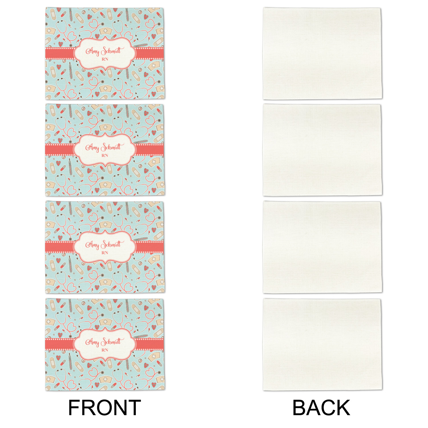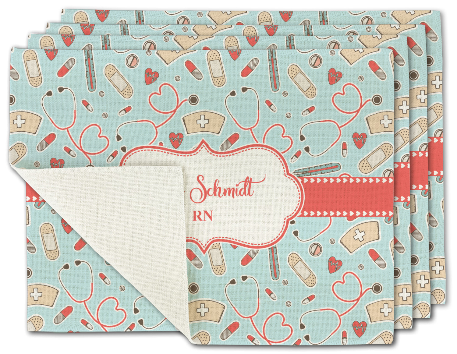 This design features a fun pattern with illustrations of different nursing tools, such as a stethescope, band aid, medicine, and more! The background is a light blue, while the ribbon is a coral color. There is a frame in the middle to put your personalization.