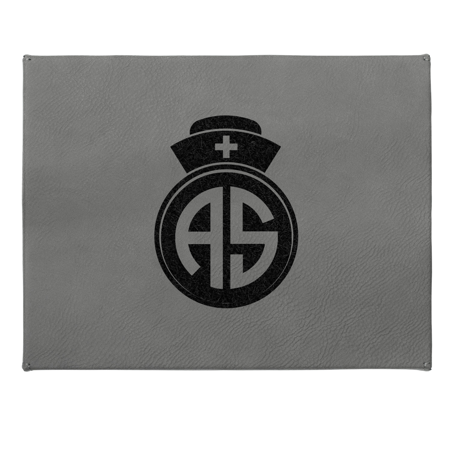 This design features a fun pattern with illustrations of different nursing tools, such as a stethescope, band aid, medicine, and more! The background is a light blue, while the ribbon is a coral color. There is a frame in the middle to put your personalization.