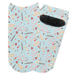 This design features a fun pattern with illustrations of different nursing tools, such as a stethescope, band aid, medicine, and more! The background is a light blue, while the ribbon is a coral color. There is a frame in the middle to put your personalization.
