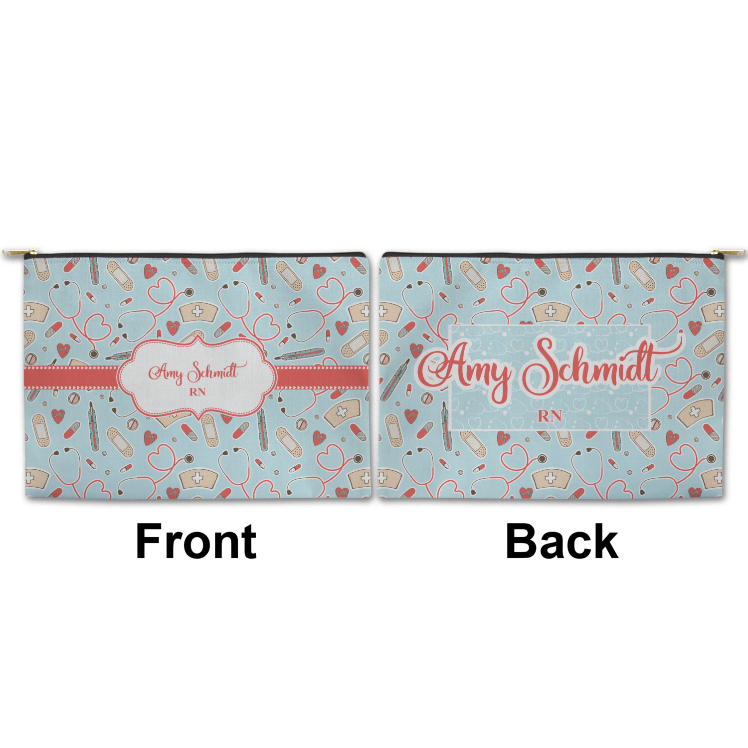You can design both the front and the back of the pouch - same design, two complementary designs or two totally different designs - the choice is yours! We offer many different personalization styles i.e. name, name & initial, monograms - so the choice to personalize is also yours.