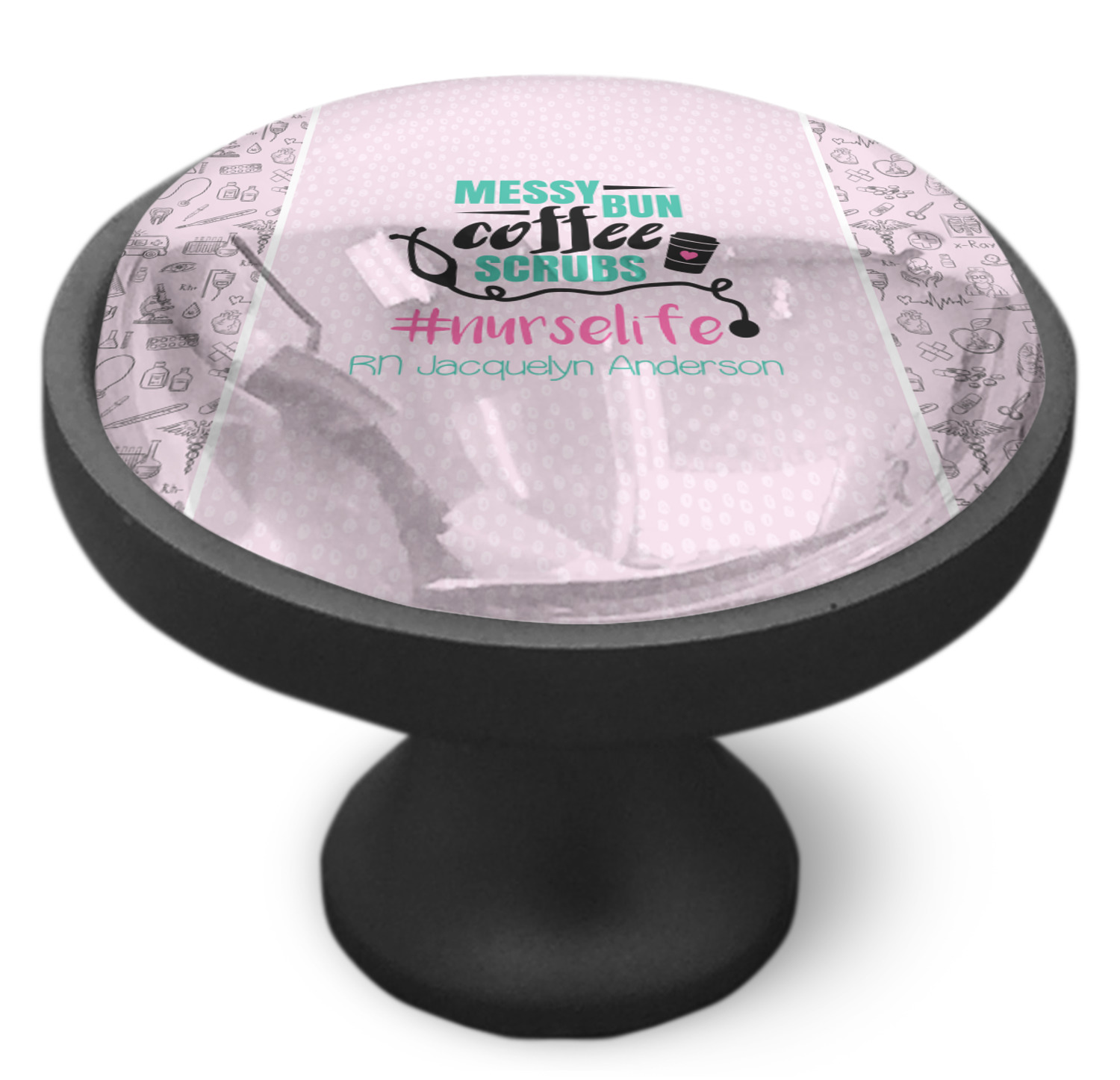 We sell these cabinet pulls in two different colors to better match your room's color scheme. We offer an oil-rubbed bronze base that is black in color, and a satin nickel option, which has a silver color. Your design is displayed across a high gloss vinyl insert that is placed on top of these cabinet handles. We then place a 1 inch thick glass cabochon atop the design, which seals the cabinet knob and makes the colors of your customization stand out. These custom cabinet knobs are approximately 1.3 inches in diameter. Your purchase includes a 1 inch screw that can be used to mount the knob to any cabinet in your home.