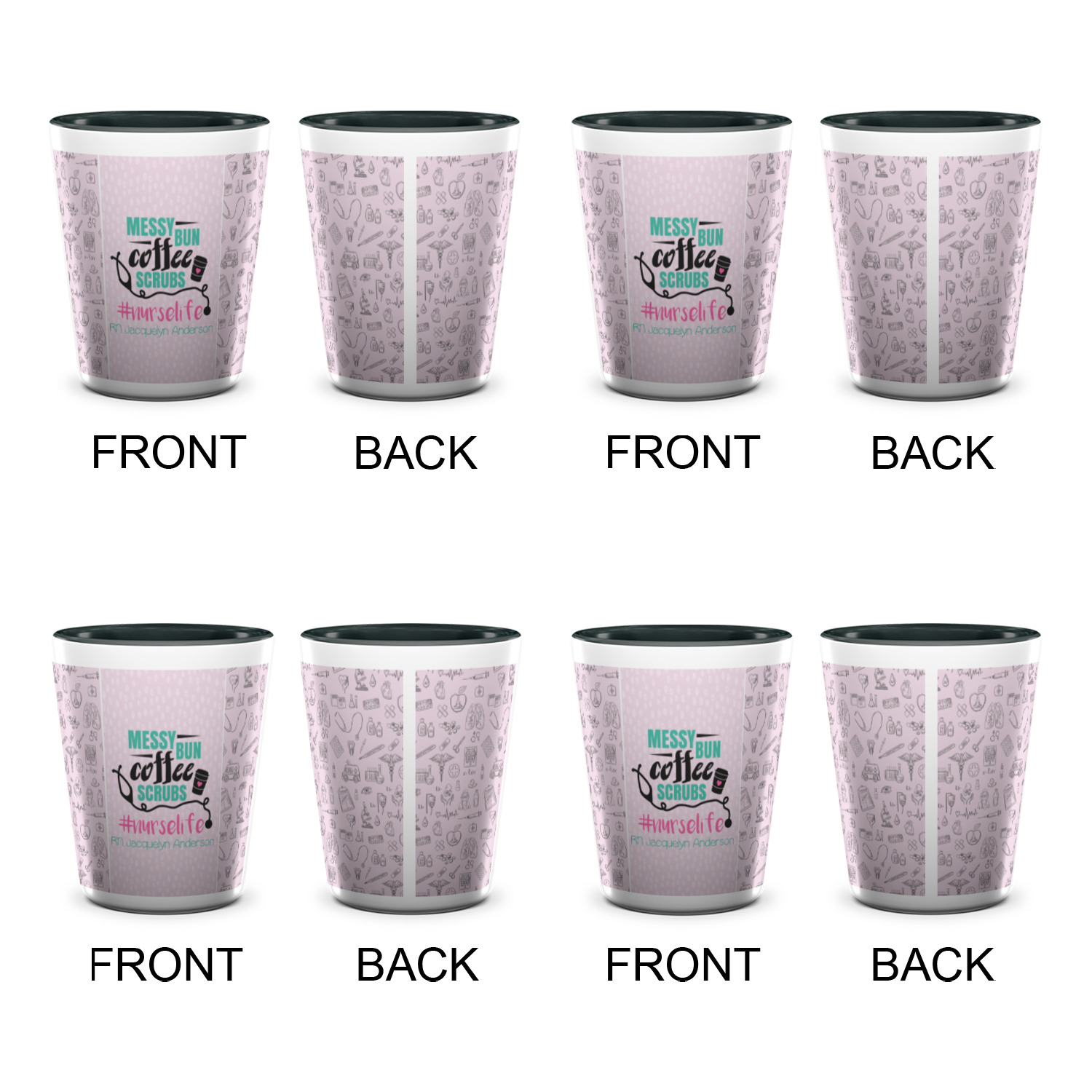 Made from ceramic these shot glasses are printed in full color with the design of your choice. These are a standard 1.5oz size and stand 2.25" tall. Available in a full white ceramic or a two-tone with a black color inside the shot glass. Buy a single or a set of 4, all of which can be designed separately to get you just what you want and need.