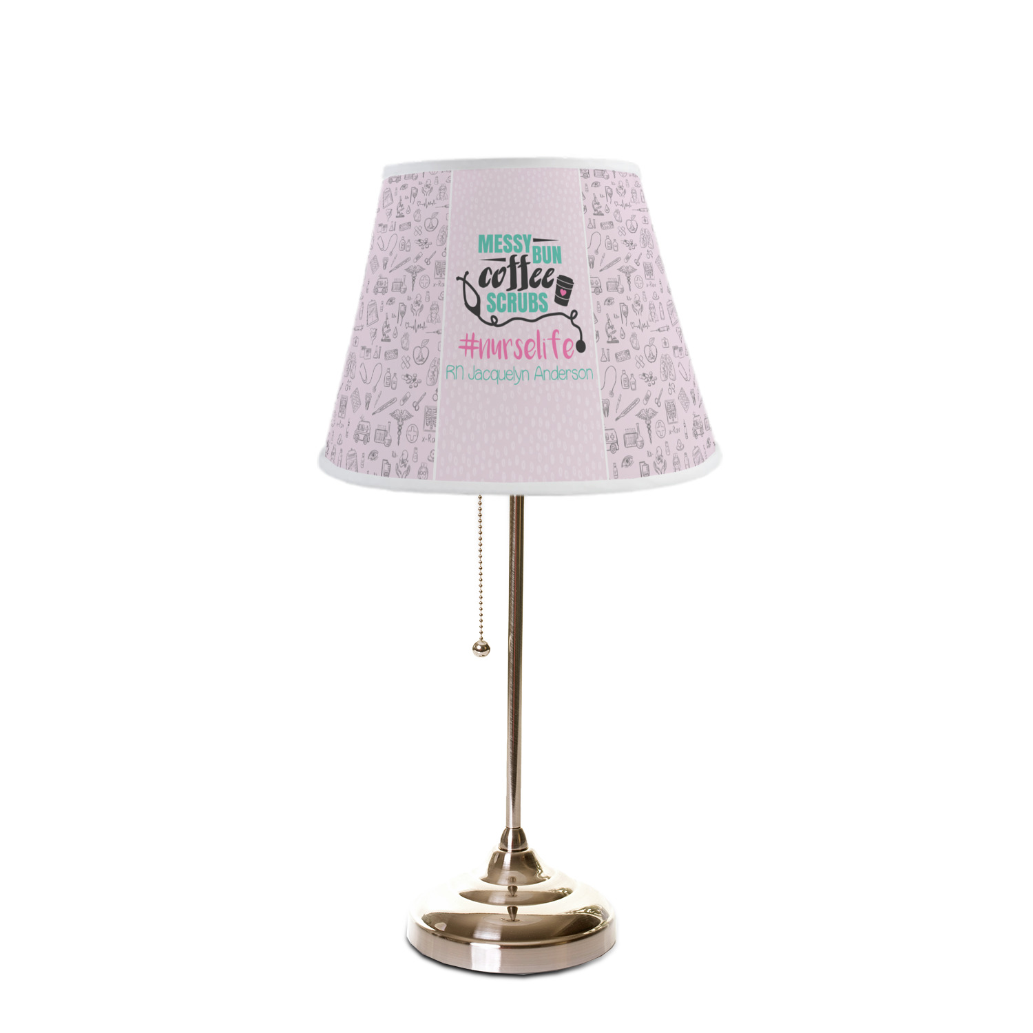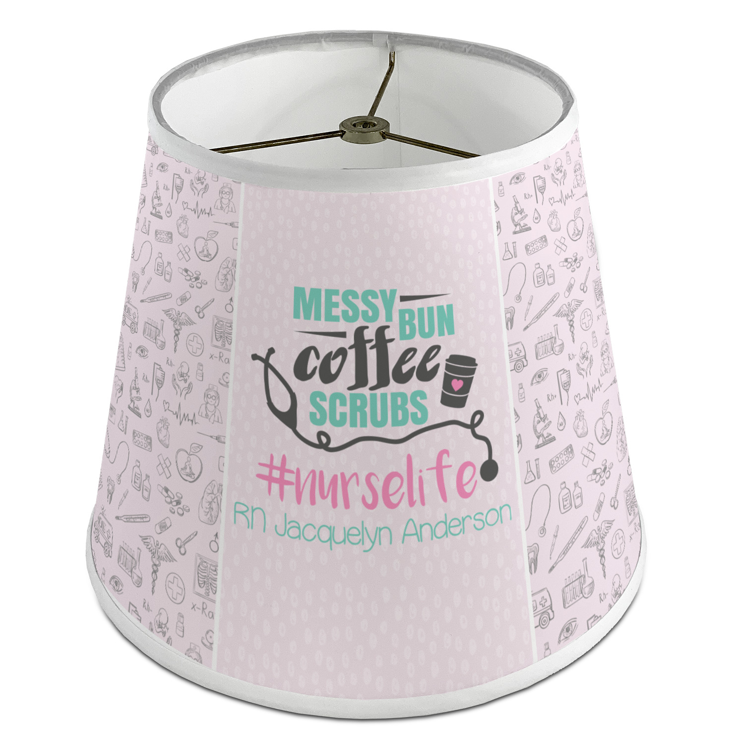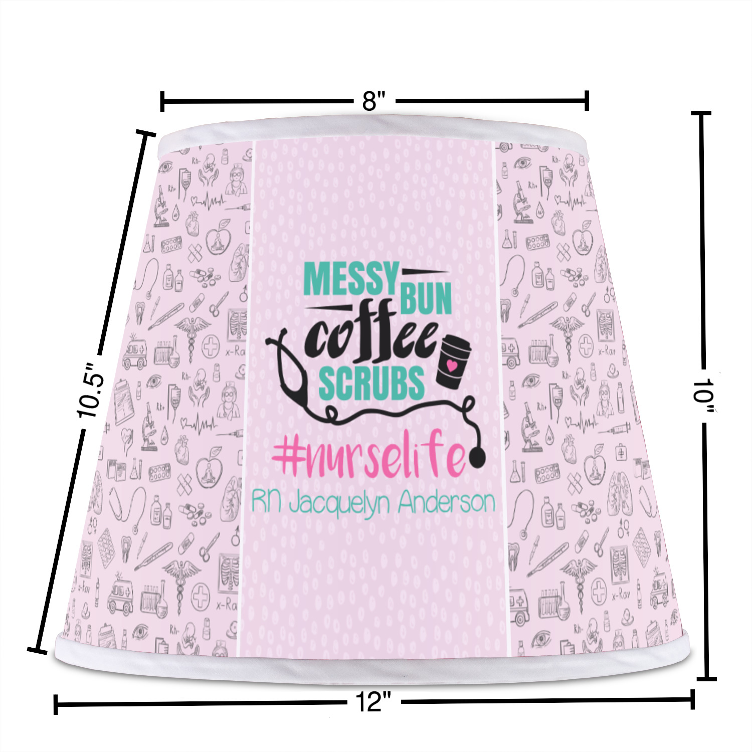 The base of this lampshade is 12 inches in diameter, and the top spans 8 inches in diameter. The total height of the lampshade is 10 inches. The angled nature of this custom lampshade concentrates the light, making it ideal for smaller spaces. This lampshade is made of matte, polyfilm, and displays your customization in its middle. The top and bottom of this colorful lamp shade are lined with a white fabric ribbon (which can be replaced with black inside the design studio) which frames your design and creates a sophisticated finish. As an UNO fitter lampshade, this unique lamp shade will fit a variety of bases.