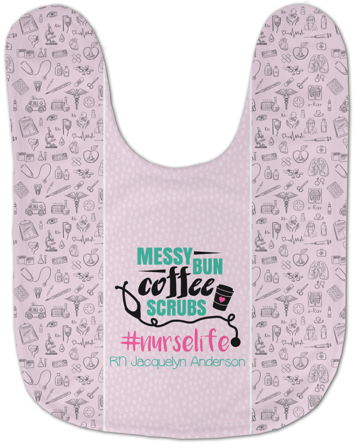 Made of soft polyester, each customizable bib hugs comfortably around the neck to catch every drip and drool. Each bib design is printed with baby-safe ink and finished with a secure stitch pattern and velcro clasp. We carry two customizable bib styles -Microfiber Velour and Jersey Knit.