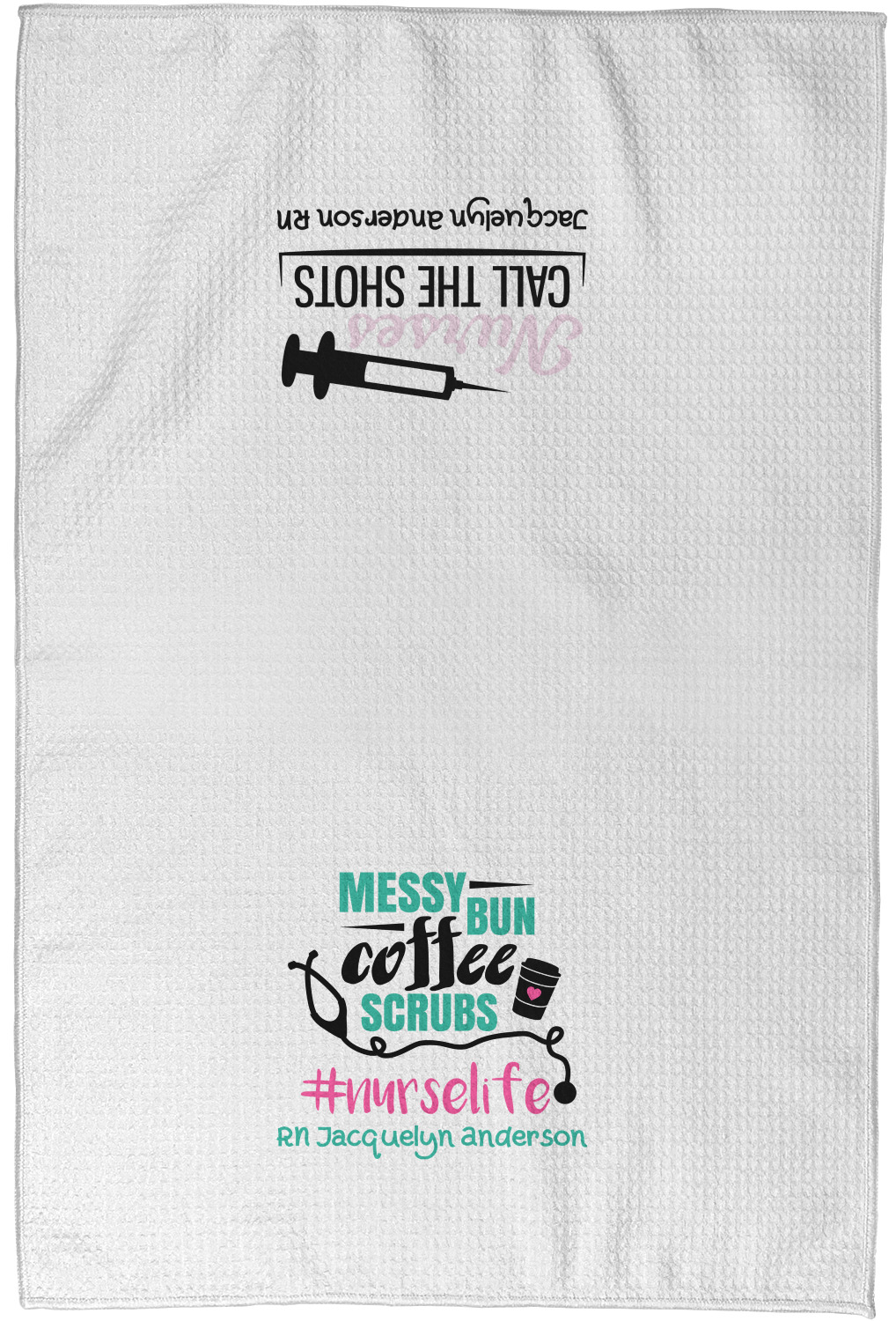 Each waffle weave kitchen towel is approximately 16 x 24 inches with your design printed on one side and the back is white.