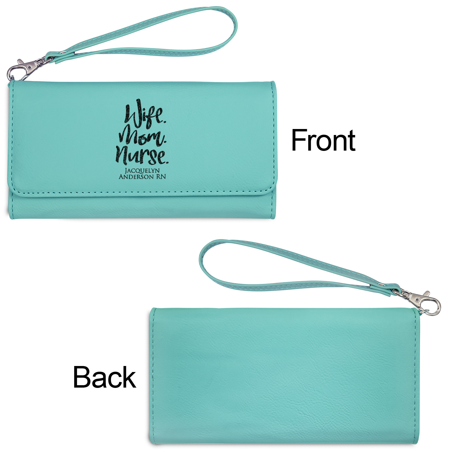 These personalized ladies leather wallets are available in 2 colors - rawhide / cognac and teal.