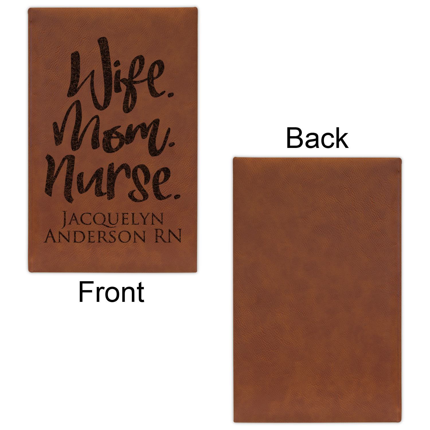 The faux leather covers are a rich cognac / rawhide color and can be customized with your design. From a simple name or monogram or a logo to a detailed mandala - the choice for customization & personalization is truly yours. Customize one of our designs or upload your own.