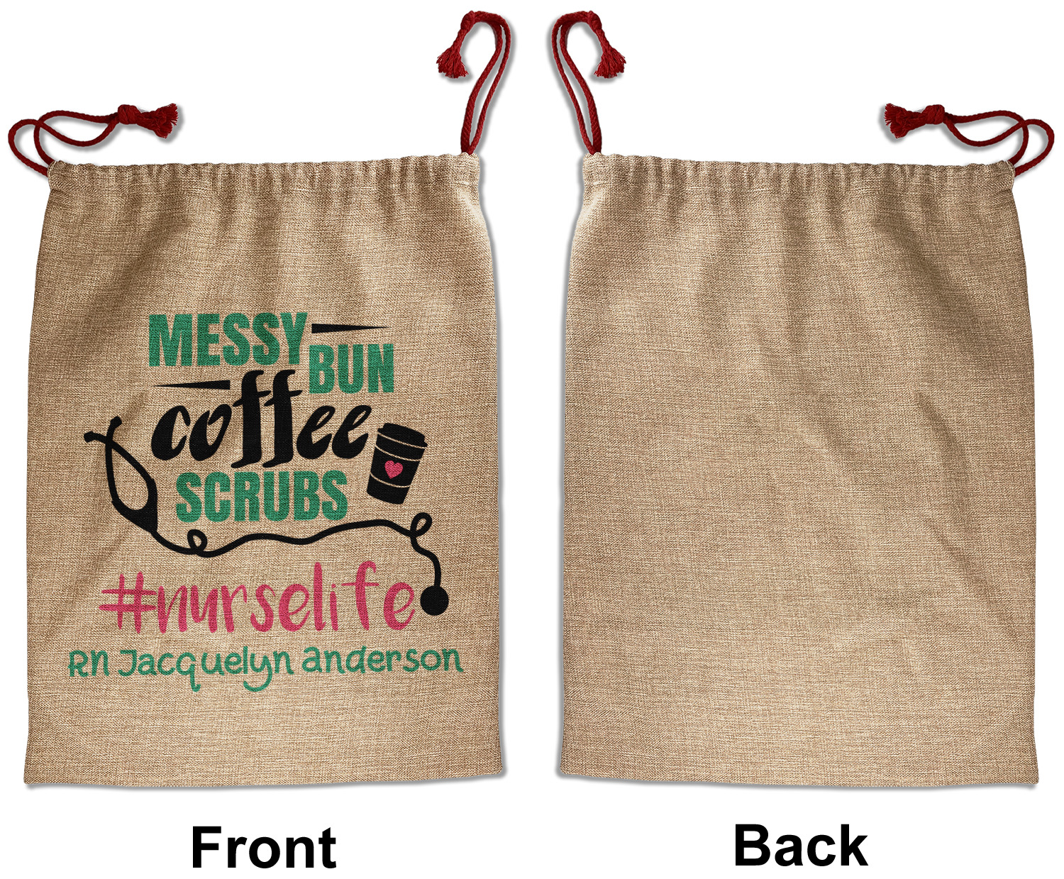 Our Santa sacks print your design on the burlap material giving it a nice rustic, natural design! The burlap material is also machine washable and wrinkle-free, so feel free to fold and store out Santa bags until the next time you need it! Secure your gifts with our red accent drawstring ties at the top of the sack so the mystery of your gift stays a surprise until Christmas day. We offer two types of printing- one side partial print or double-sided partial printing. Design and personalize your own Santa sack in time for the holidays!