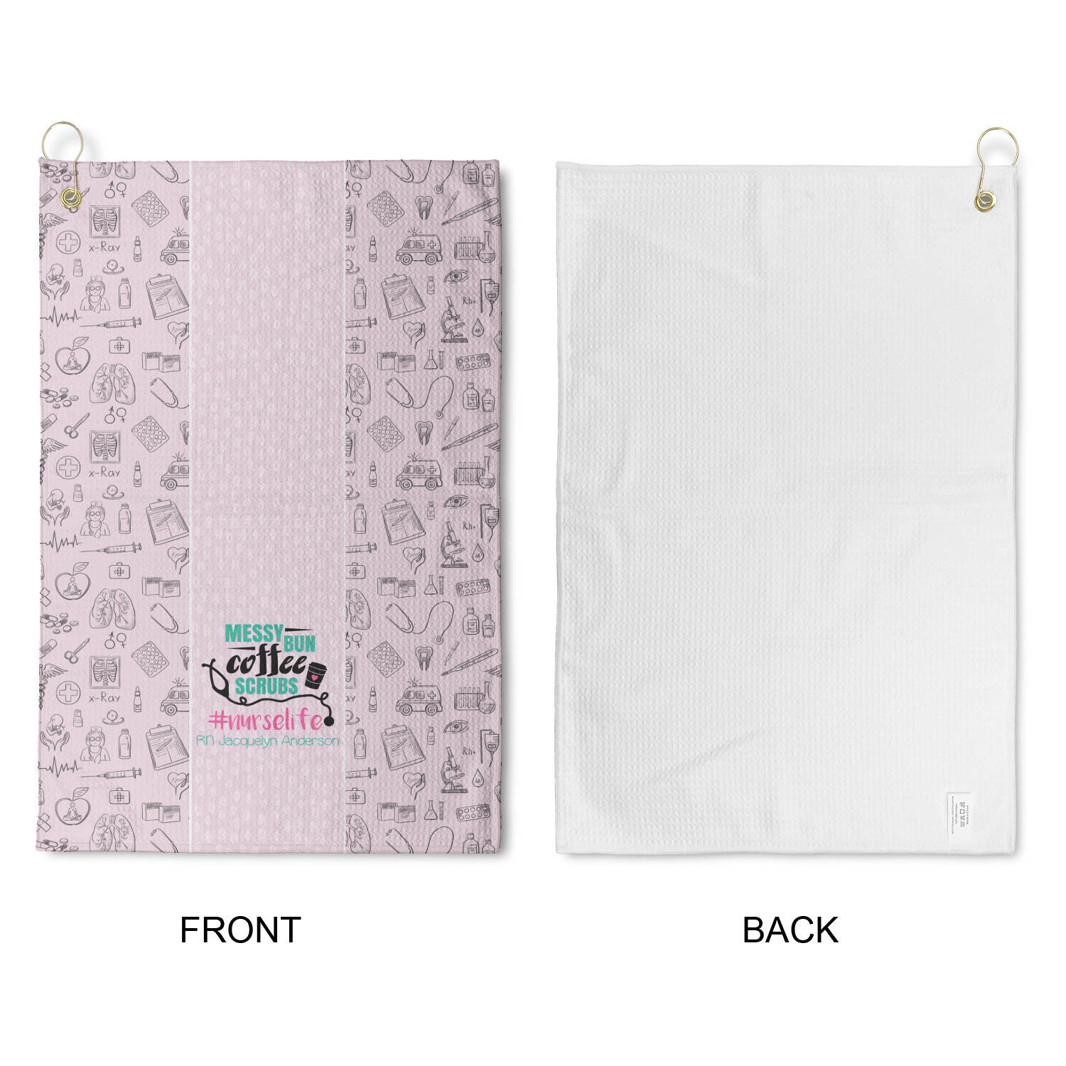 Personalize your design for your towel in our design studio then we will custom print and make it for you. The heavy duty brass grommet and hook are perfect for hanging anywhere you need it to. The waffle weave material is a durable microfiber material that will absorb up to 7 times its weight.